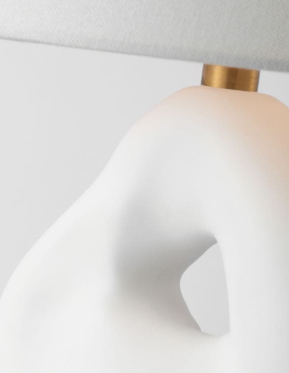 Two tall white table lamps with simple white shades are placed on side tables on either side of an interesting art piece in a cozy living room.Two tall white table lamps with simple white shades are placed on side tables on either side of an interesting art piece in a cozy living room.