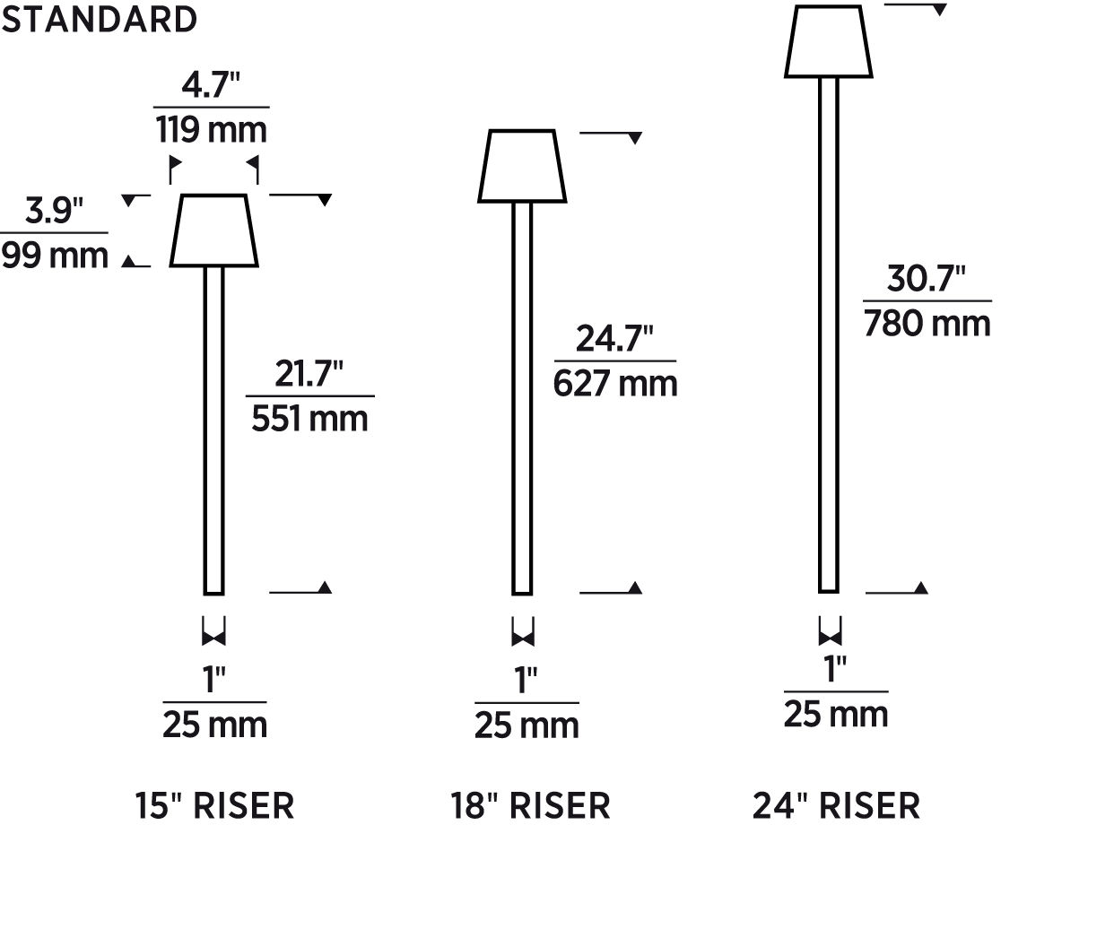 | 12 | 18" Riser (1" Diameter) |