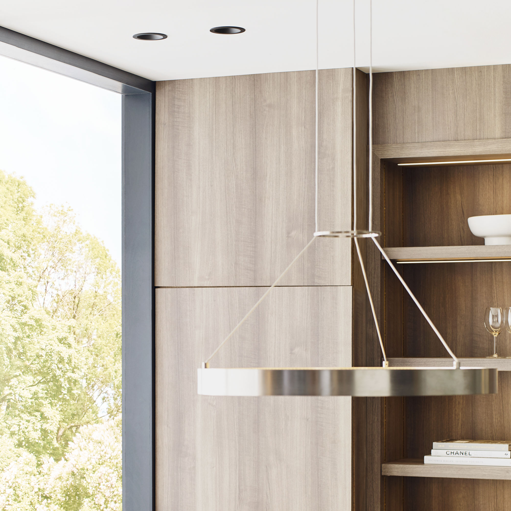 - Flangeless wood ceiling installation available