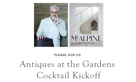 Join us and our special guest, Bobby McAlpine, as we kick off Antiques at the Gardens with light bites and libations.