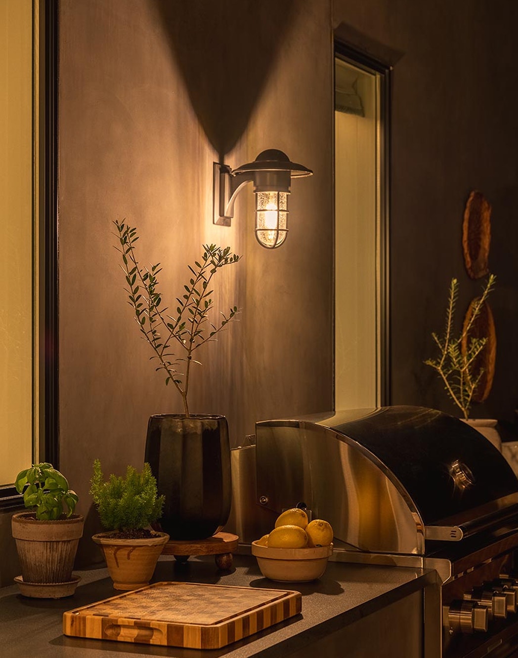 Austin’s temperate climate is perfect for outdoor hosting, made even more inviting with the Marine Indoor/Outdoor Wall Light by Chapman & Myers. Design by Caitlin Creer.