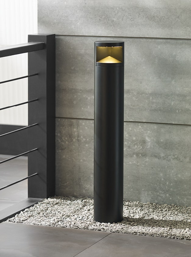 Bollard lights are outdoor fixtures that can be used to illuminate both pathways and landscapes. Mounted on a two to four foot sturdy post (or “bollard”), bollard lights can project light horizontally or downward.