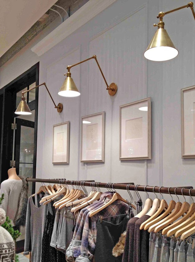 If you have fitting rooms in your store, then wall sconces are an excellent choice. In fitting rooms, you want the light to be pleasant and inviting rather than harsh and glaring. It’s best to avoid overhead, fluorescent, or halogen lighting as it can create sharp shadows and make colors look unflattering.