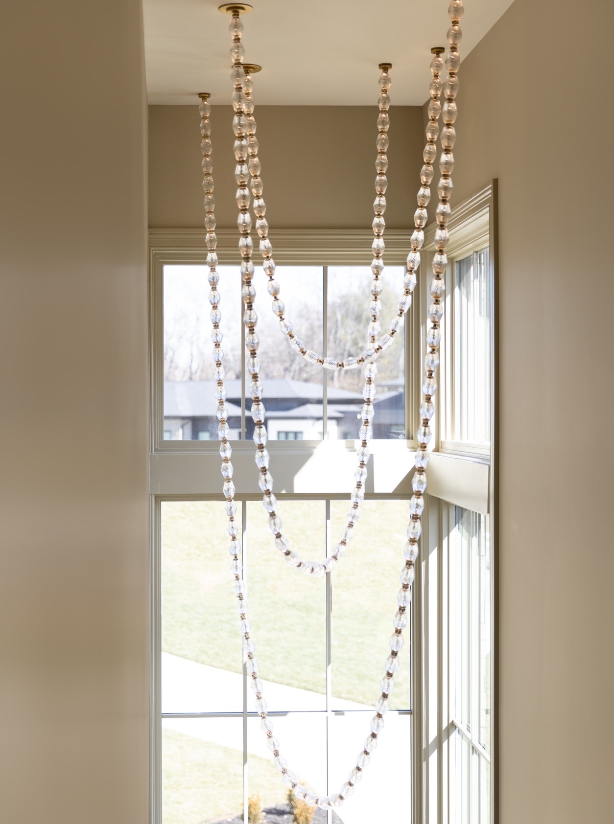 As with any whole-home custom build, a comprehensive lighting plan comes early in the process, and when it was time to select a lighting partner for the project, Paranjape knew who to call. “Visual Comfort is a part of all of our projects,” she says. “There was not a second choice.” Moreover, the attention to detail in the lighting plan not only enhances the home's aesthetic appeal but also creates a warm and inviting atmosphere for both residents and guests. “In every design project, we introduce important pieces of lighting to establish the tone of the home,” she says. Here, superstars – the luxe Collier in the stairwell, for instance – stand out against a chorus of favorites from Kelly Wearstler’s Melange and Ebell series, studded throughout the floorplan for cohesion.