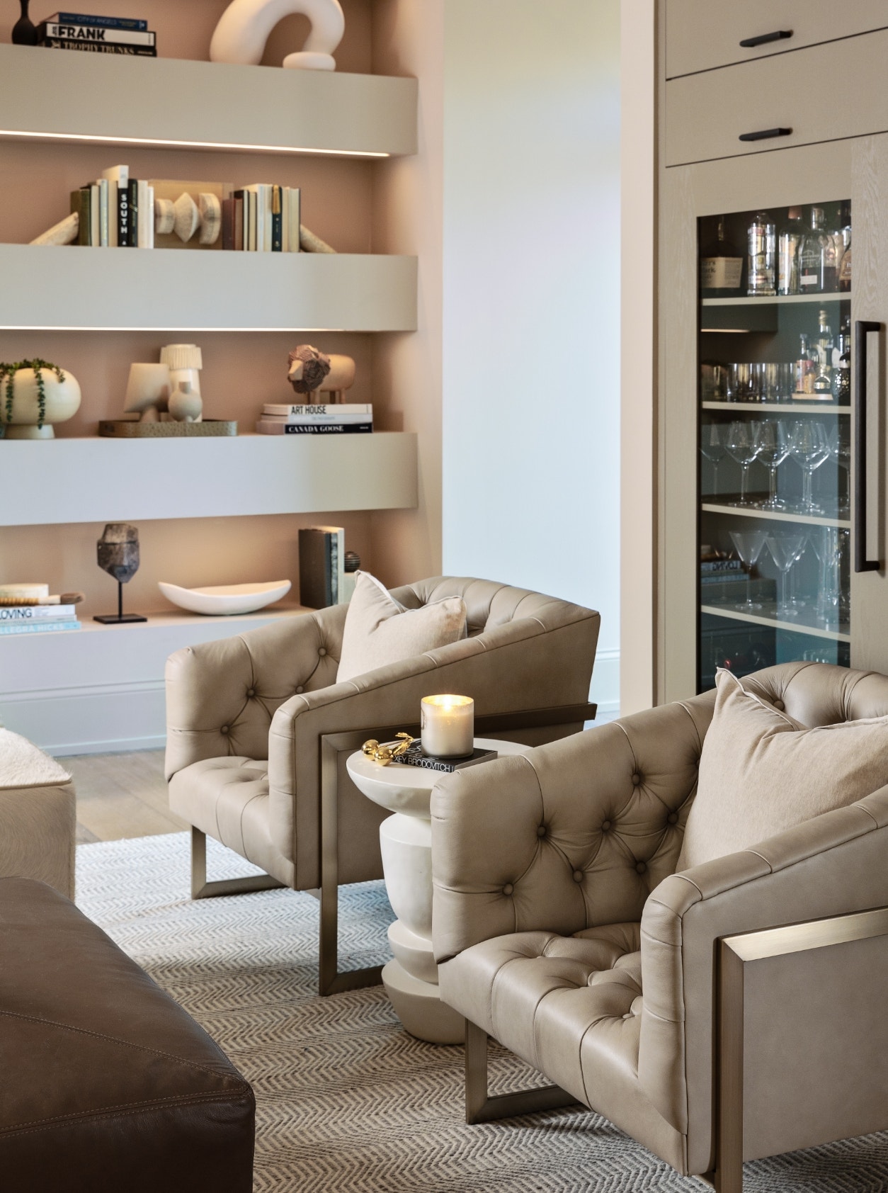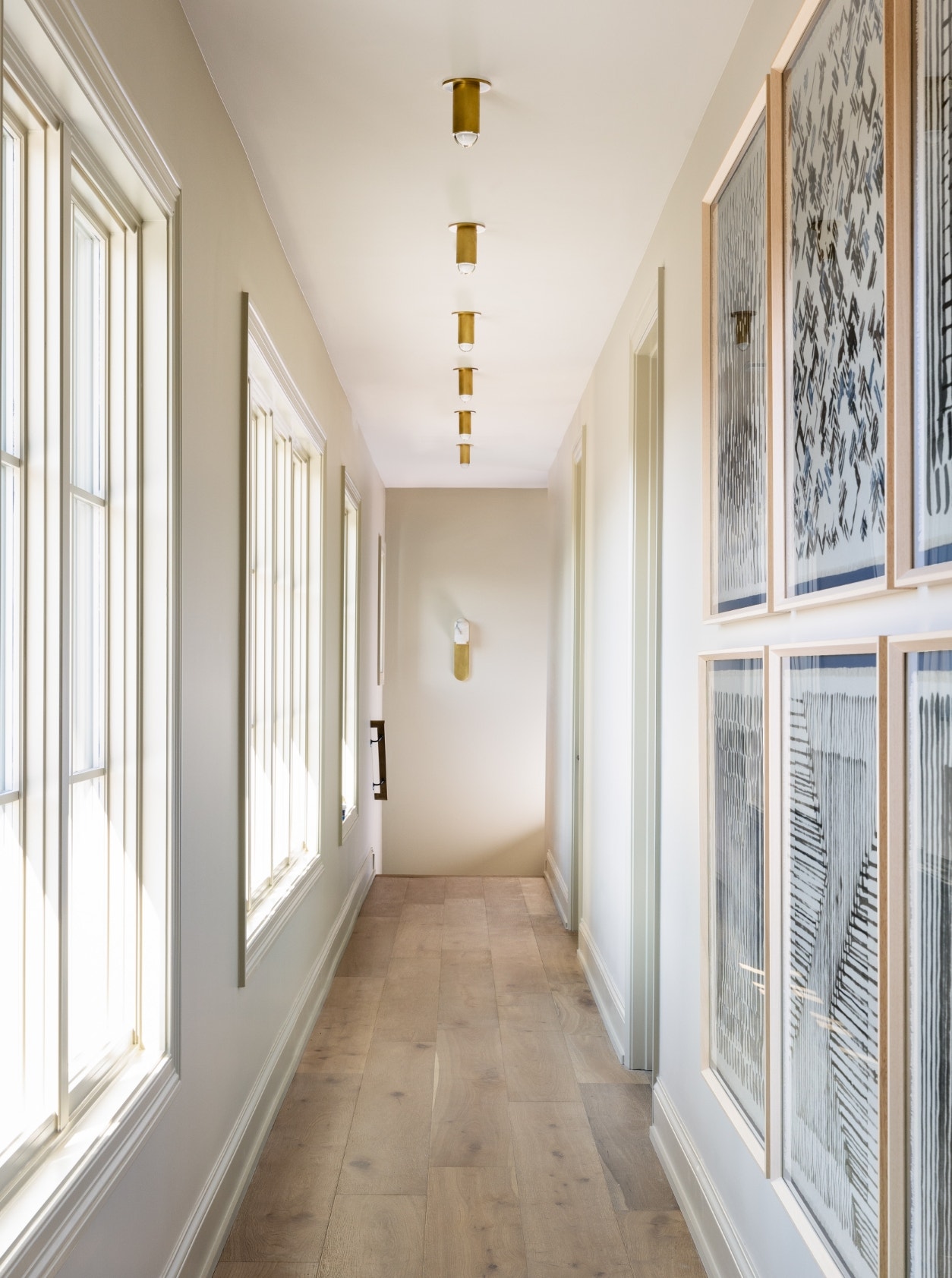 While the designer knew exactly how her home should look and function, when it came to the architectural lighting, she called in the experts: Visual Comfort’s architectural lighting design services team. By layering in wall washers and directional recessed spotlights that draw the eye to specific places (commissioned art in the gallery, custom millwork in the family room), Visual Comfort specialists helped Paranjape to elevate the house even further – and some of their suggestions will shape the designer’s work for clients moving forward. “The toe-kick lighting around the perimeter of the kitchen cabinetry and in the bathrooms is something we’re doing in all of our projects now,” she says. “Architectural lighting isn’t necessarily something you notice, except for how it makes you feel.”