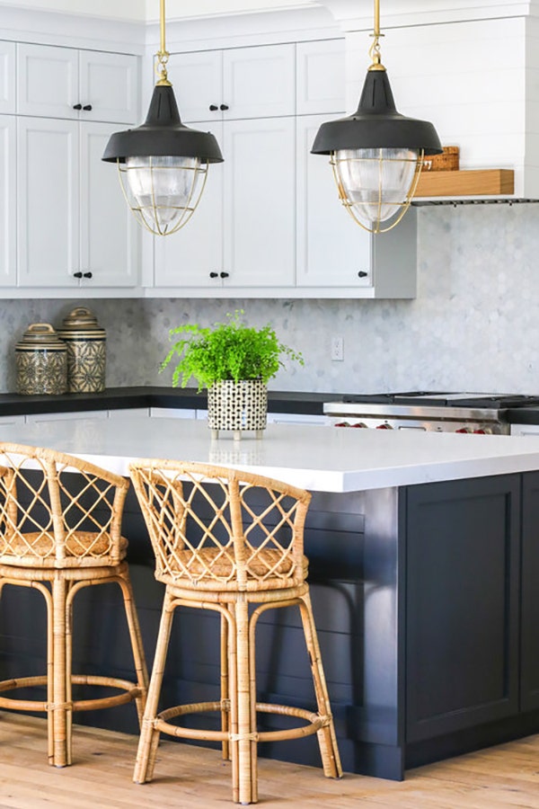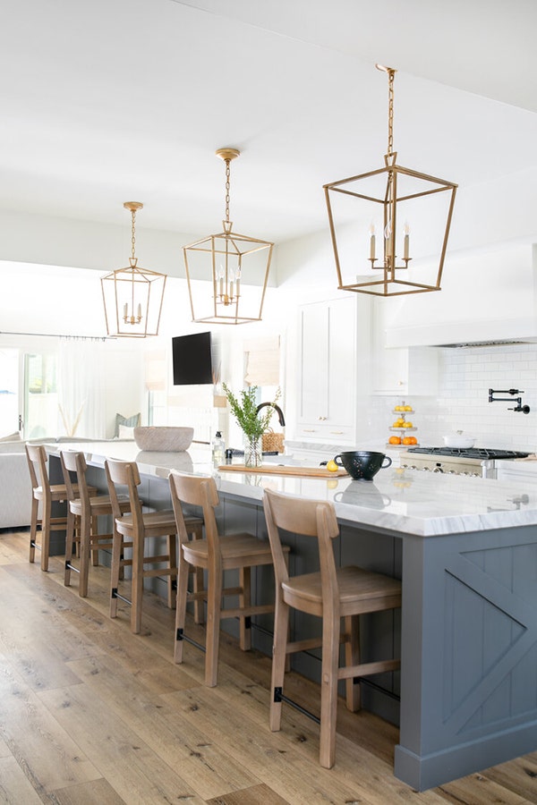 “Cooking is my love language,” Valerie says, which is why designing functional beautiful kitchens that work for the families that use them is one of her favorite parts of the job. “I'd been dying to use these Halo Hanging Shades by Barbara Barry,” Valerie says.