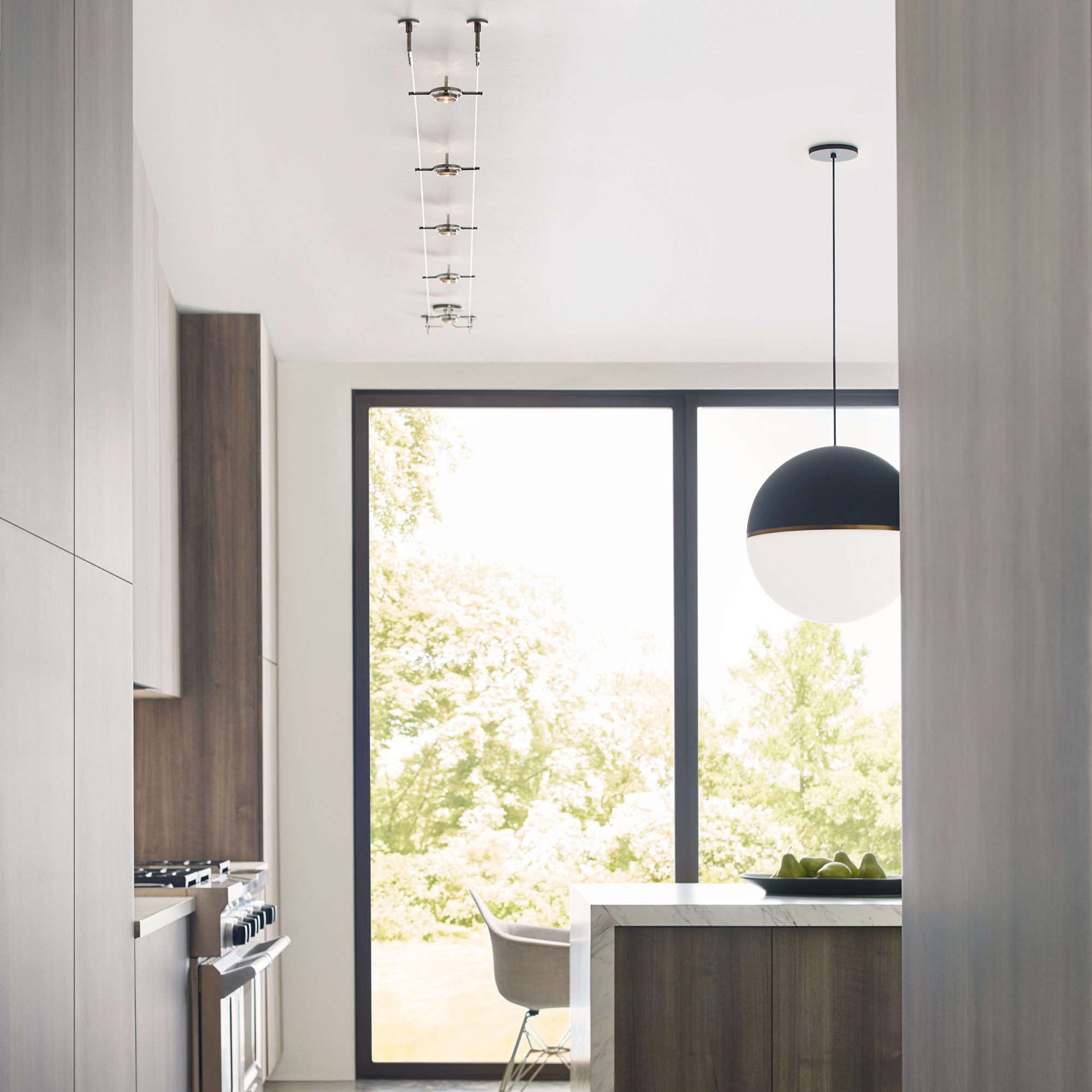 The K-Hello display head by VC Modern combines design simplicity with practical technology. The K-Hello is highly adjustable as it tilts between the Kable Lite system allowing for a 140 degree head rotation within its ring. Customize the K-Hello by selecting from 1 of 3 distinct cable spreads, each defined spread helps to further direct light to the desired location. This low-voltage display head is ideal for home office lighting, family room lighting and living room lighting. K-Hello ships with Eggcrate Louvers saving you both time and money. Additionally, K-Hello is compatible with a Glass Lens MR16 Snoot (both sold separately). All lamping is fully dimmable to create the desired ambiance in your special space.