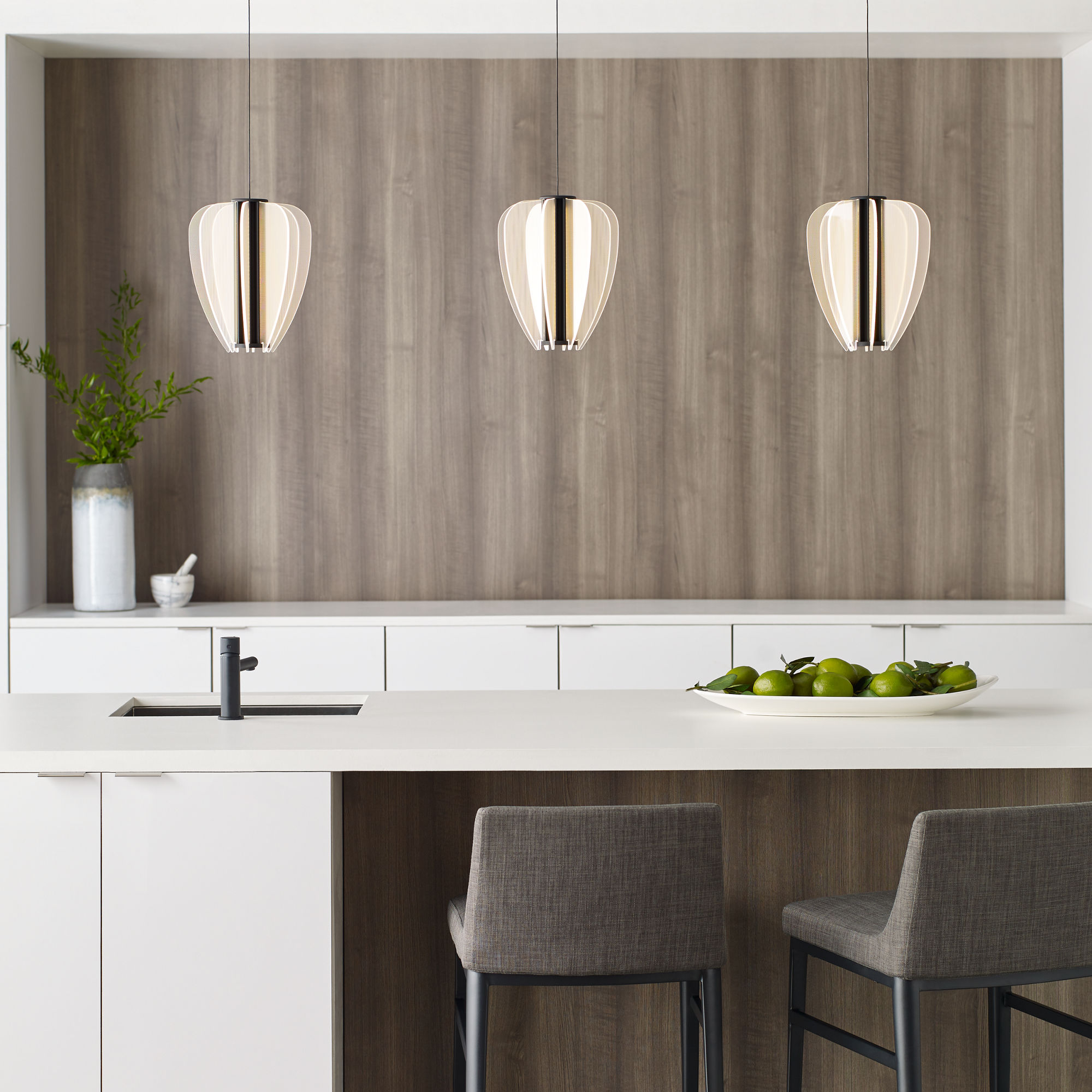 Mini Nyra Pendant by Sean Lavin is a stunning collection inspired by the geometric nature of a flower bud. Featuring light guide LED technology, Nyra has beautiful acrylic LED petals producing an ample amount of general illumination. Offered in modern finishes. For a coordinating look, the Nyra Collection is also available in Chandeliers and a generously sized Linear Suspensions. Low-Voltage pendants are great solution as individual pendants and complement our VC Modern MonoRail Track System.