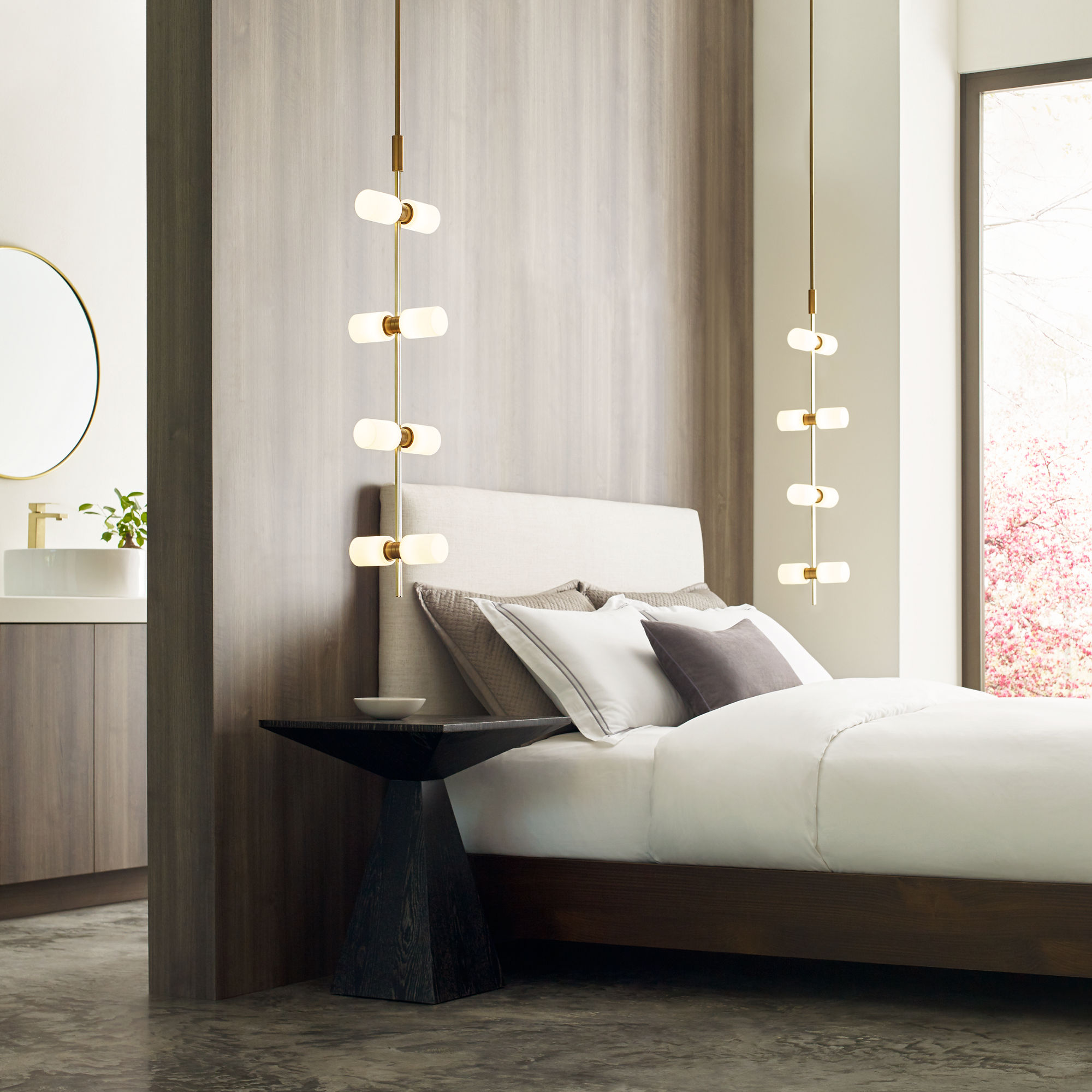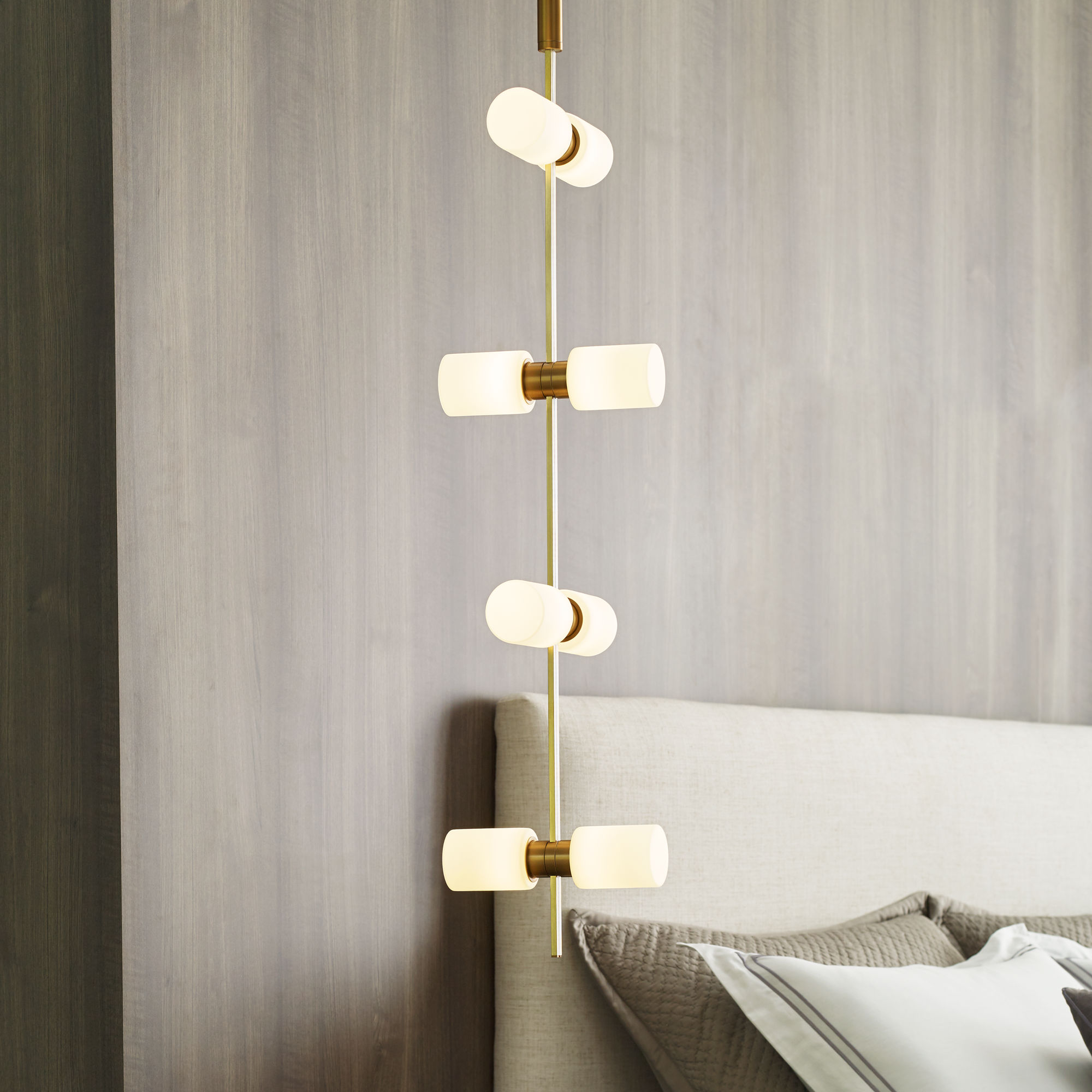 The Cylinders Head by Sean Lavin provides versality and functionality to create a modern light sculpture or custom chandelier when mounted on MonoRail. The entire system can be installed close to the ceiling to create drama and beauty in applications with limited ceiling heights or it can be dropped lower into the room to create depth and dimension in a limitless number of forms.