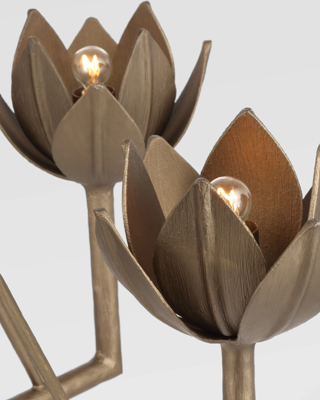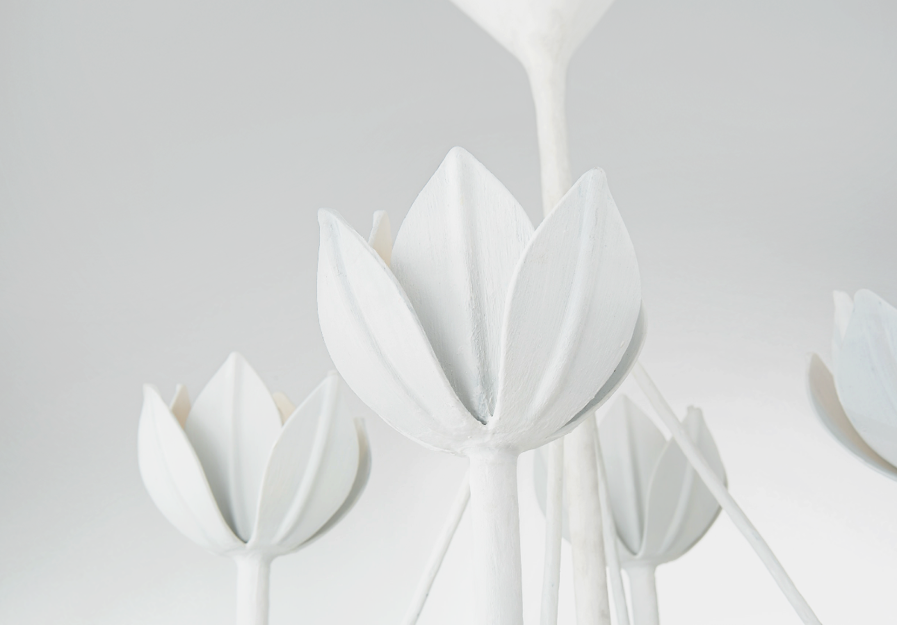 “I love flowers and plants,” Neill says. “They’re happy things.” For this collaboration, Neill designed the Alberto collection, a series of best-selling floral fixtures influenced by the work of Swiss sculptor Diego Giacometti. Playful yet sophisticated, this design is a tribute to one of her favorite blooms, the Hakuun tulip.