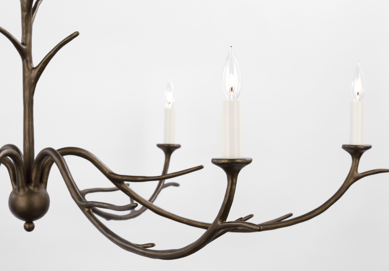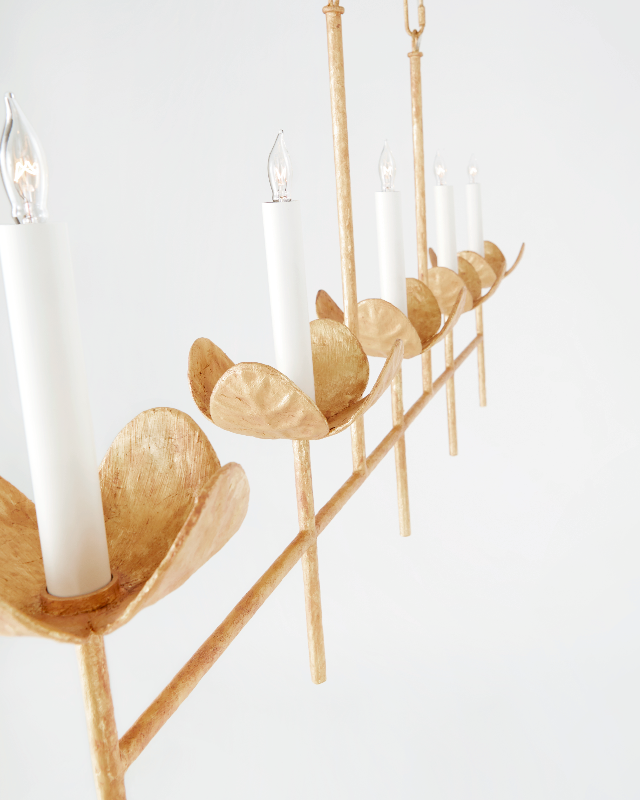 Neill and her New Orleans-based team sculpt each fixture in the design phase by hand using metal frames and plaster. "I've always thought of lighting as a piece of sculpture that you hang from the ceiling and run electricity through," she says. Her renowned Alberto collection is now available in a gleaming Antique Bronze Leaf finish, as seen above.