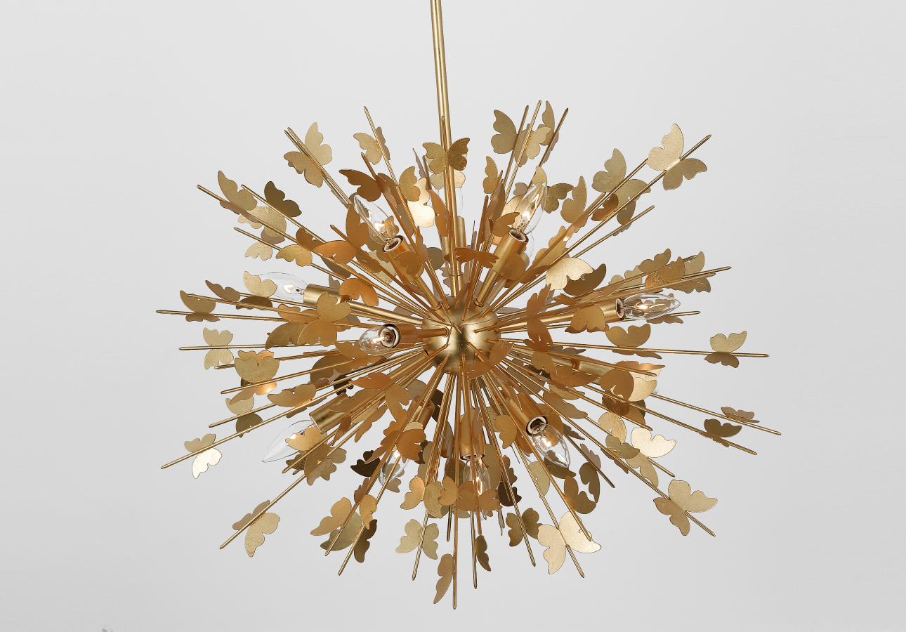 “I've told this story before, but it's true; I promise," says Neill. "One night, I had a dream about all these butterflies, so I woke up and just started cutting butterflies out of paper. That chandelier really designed itself." Eventually, the first spherical chandelier led to a larger butterfly lighting collection (Farfalle), including a sconce and linear chandelier. “I designed the sconce as a horizontal fixture, but some people are hanging it vertical and I love that too," she adds.