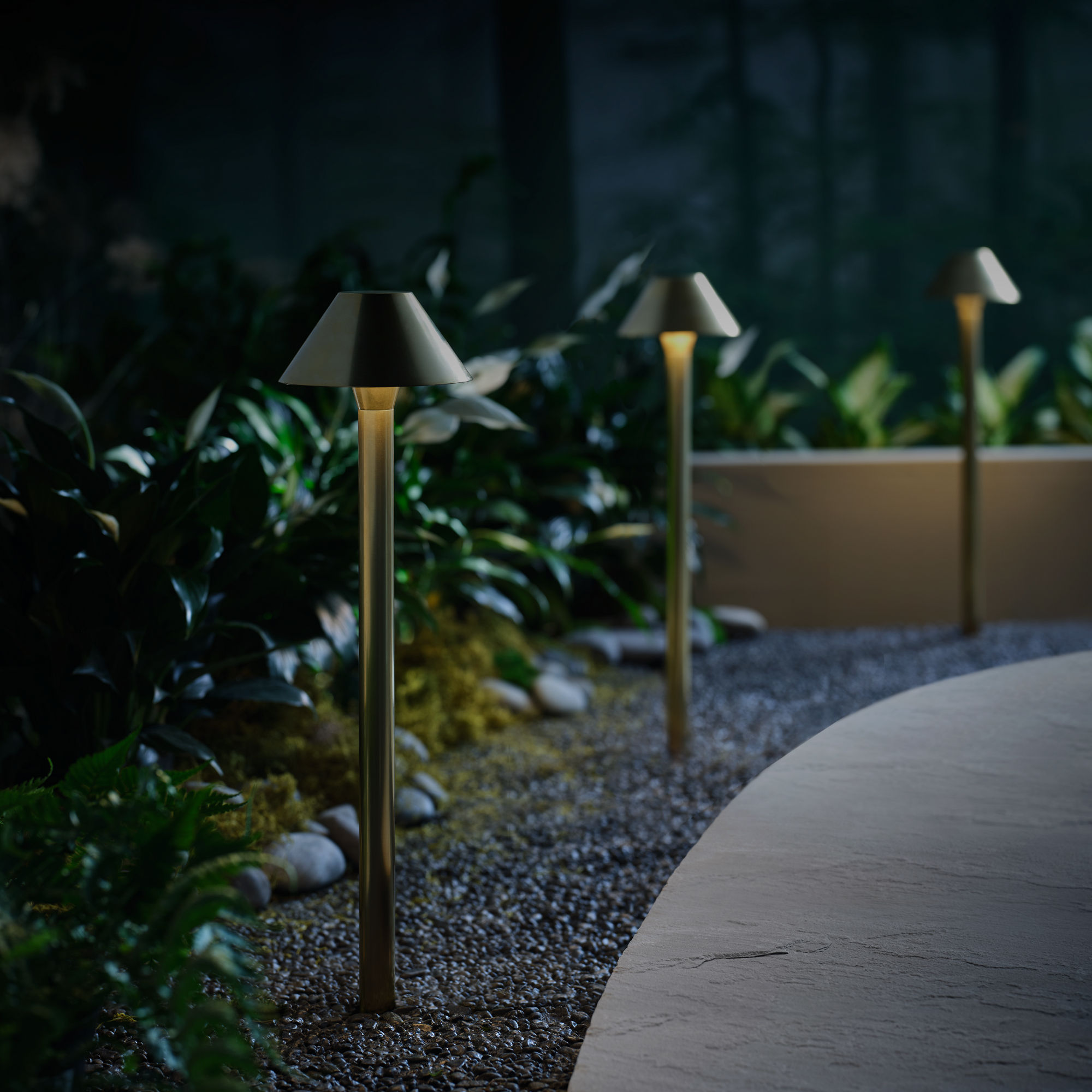 The Peak pathway light features a classic, lamp-inspired design with dramatically sloped sides that enhance its light distribution. This traditional silhouette adds timeless charm while effectively casting illumination farther across pathways and outdoor spaces.