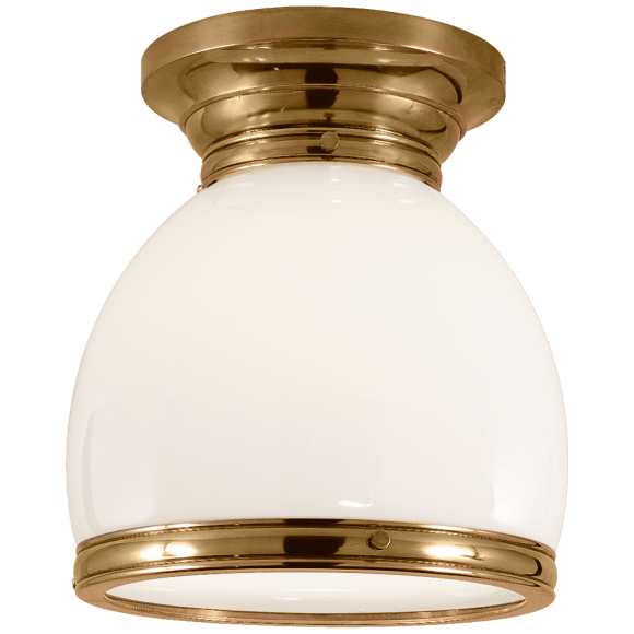 "I installed a series of Edwardian Open Bottom Flush Mounts in brass with white glass where recessed lighting would typically go."