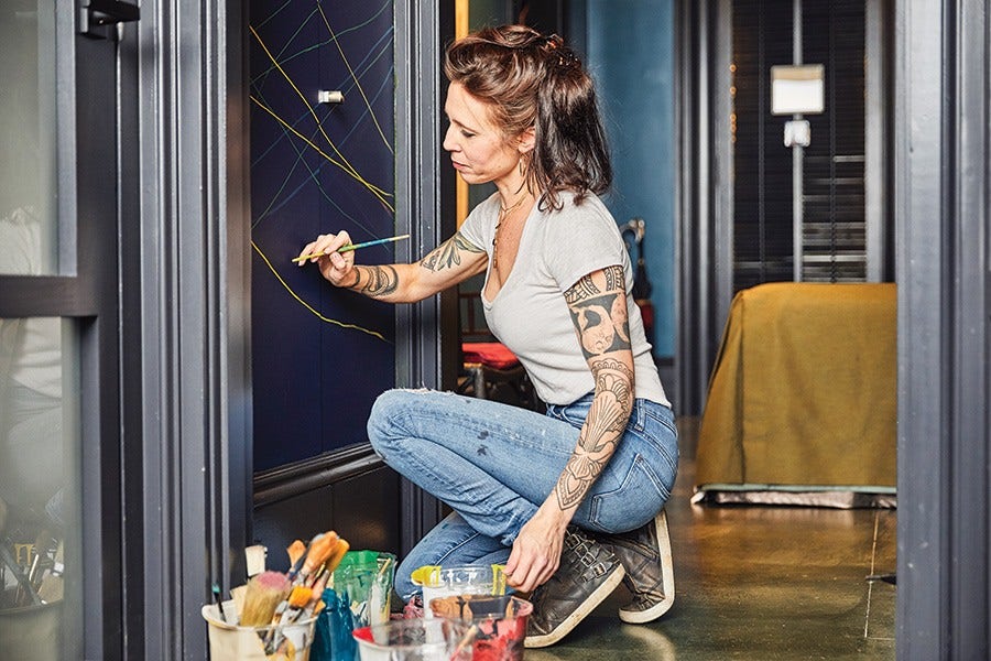“Pauline from Patina Designs is an uber talented fine artist. We recently commissioned her for a modern toile wallpaper showcasing the city of Boston. Our clients got to pick their favorite sights, and it’s going to be off the charts.”