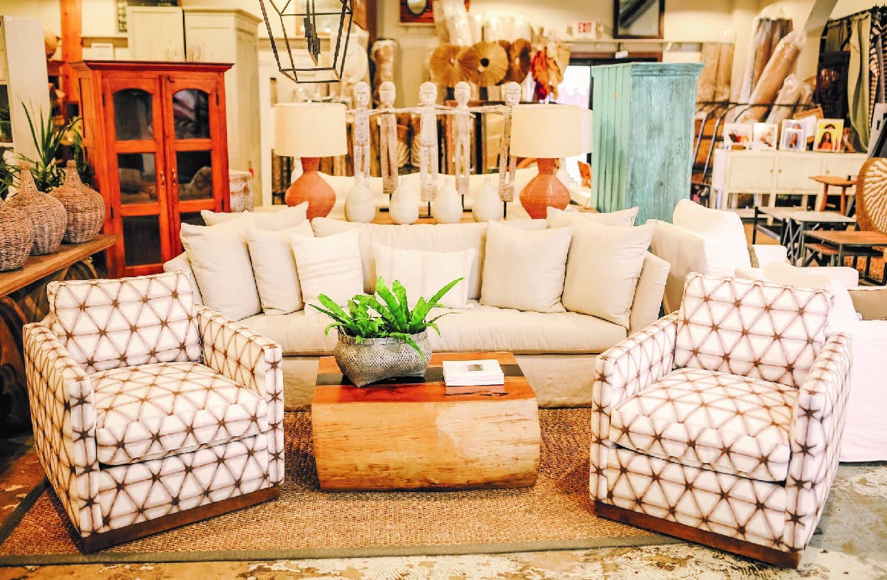 “One of the best parts of living in Charleston is being surrounded by so much greenery. I love to reference that by using Laine + Alliage Foliage Jungle (on silk), especially in a bright white beachy space with wood accents.”