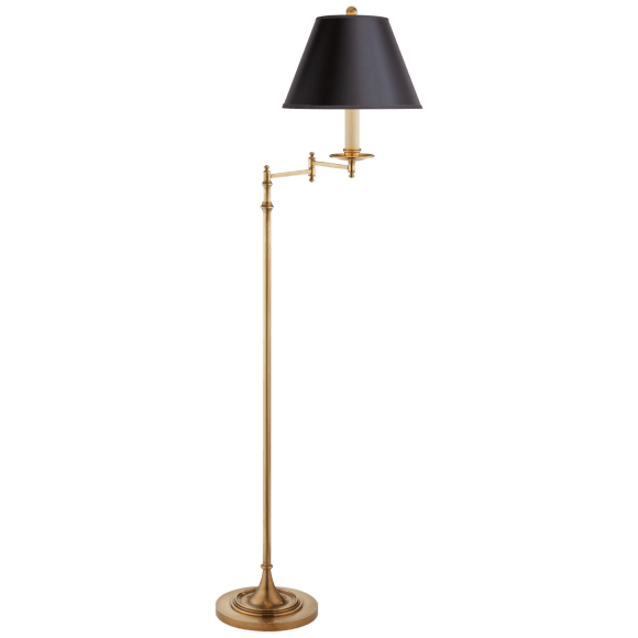 “We love to use the Dorchester Swing Arm Floor Lamp by Chapman & Myers with a black shade to help set the mood in a cocktail room.”