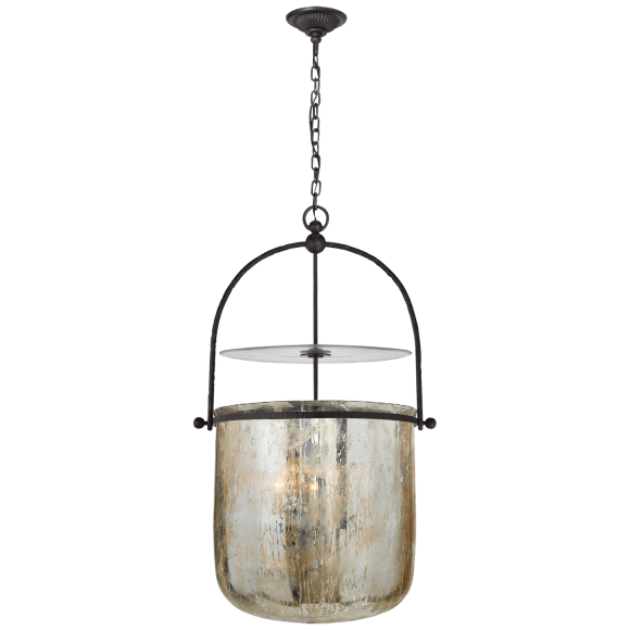 “We love the way the light shines through the mercury glass on the Lorford Smoke Bell Lantern by Chapman & Myers in Aged Iron when it’s lit. This fixture is classic in a hallway, but we also like them as kitchen pendants.”