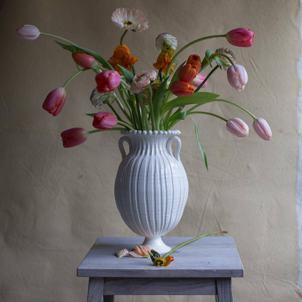 "The romanticism of Frances Palmer’s pottery creates the most compelling piece to add to any interior. This two-handle Greek vase is bold in its scale and features a hand hewn finish, beholding the most charming piece of artwork and pottery."