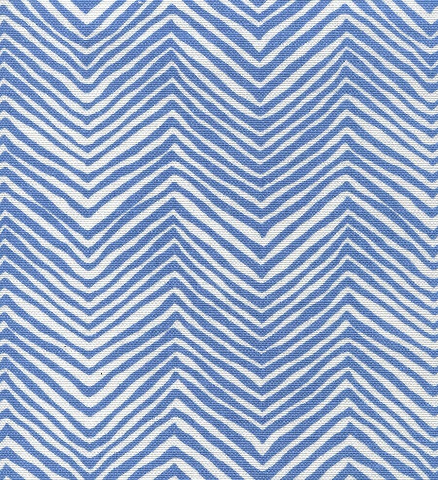“China Seas Zig Zag in French Blue is a classic that never goes out of style. It can be used in both formal and casual spaces and looks great upholstered on anything from a chair to a window seat cushion.”