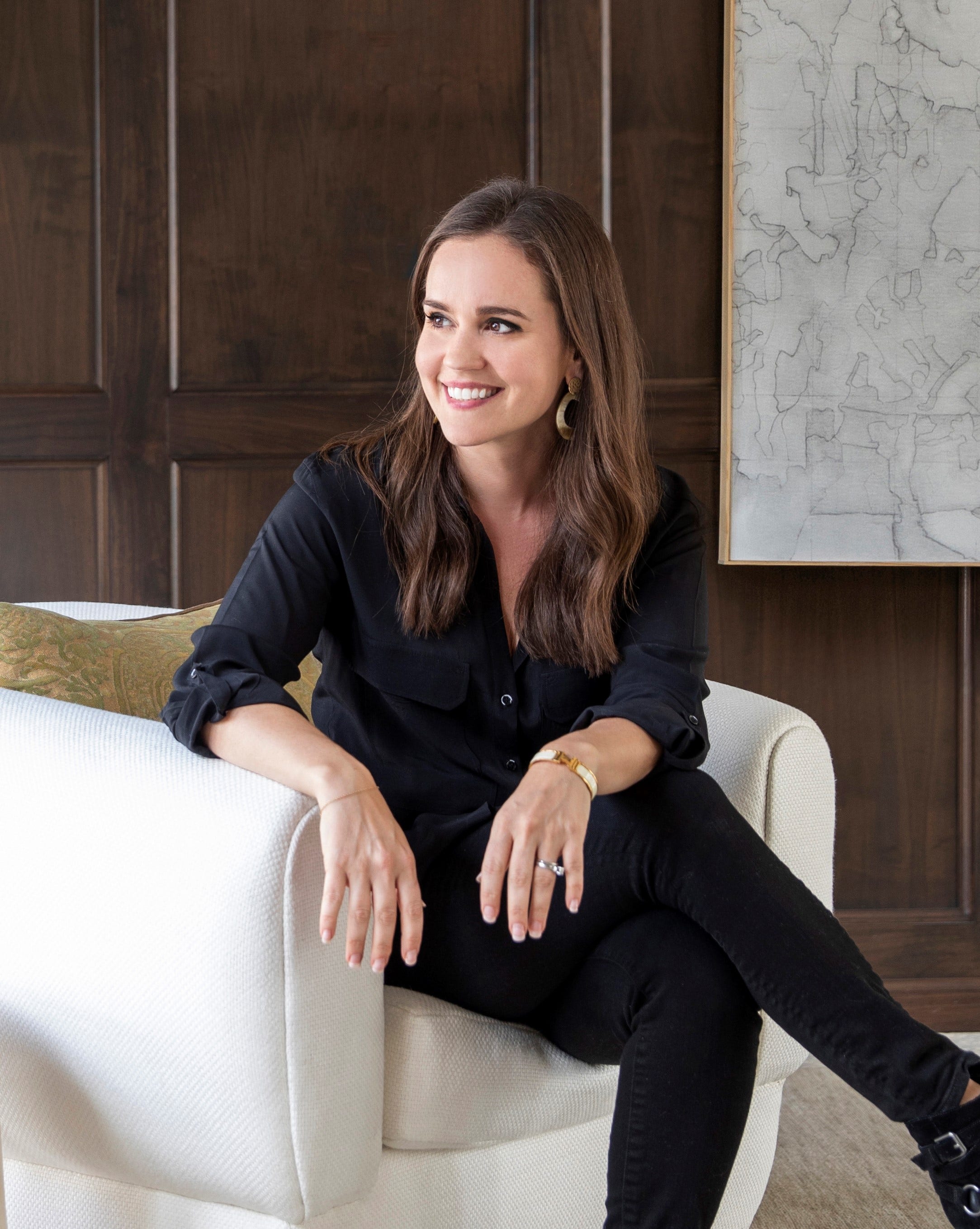 “I love to play with scale when selecting light fixtures. Using a large sculptural chandelier like the Graphic Large Two-Tier Chandelier by AERIN draws the eye up and creates a wow moment.”