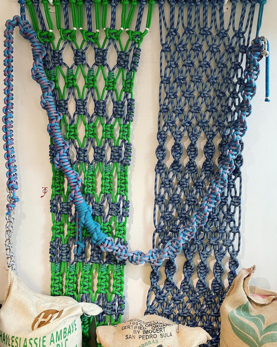"My friend Jim Olarte is hands down my favorite local artist here in Laguna. He’s a modern-day beachcomber and macramé craftsman who creates artwork from rope and treasures he finds washed up on local beaches. Whether it’s a commissioned piece for a collaborative client, colorful tendrils of macramé, or a sculpture composed of fiberglass boat fragments, Jim’s work adds an organic and local feel to our projects."