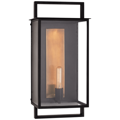 "The Halle Large Wall Lantern by Ian K. Fowler has really strikingly beautiful architecture placed either externally or internally, running down a hallway or over a bathroom vanity."
