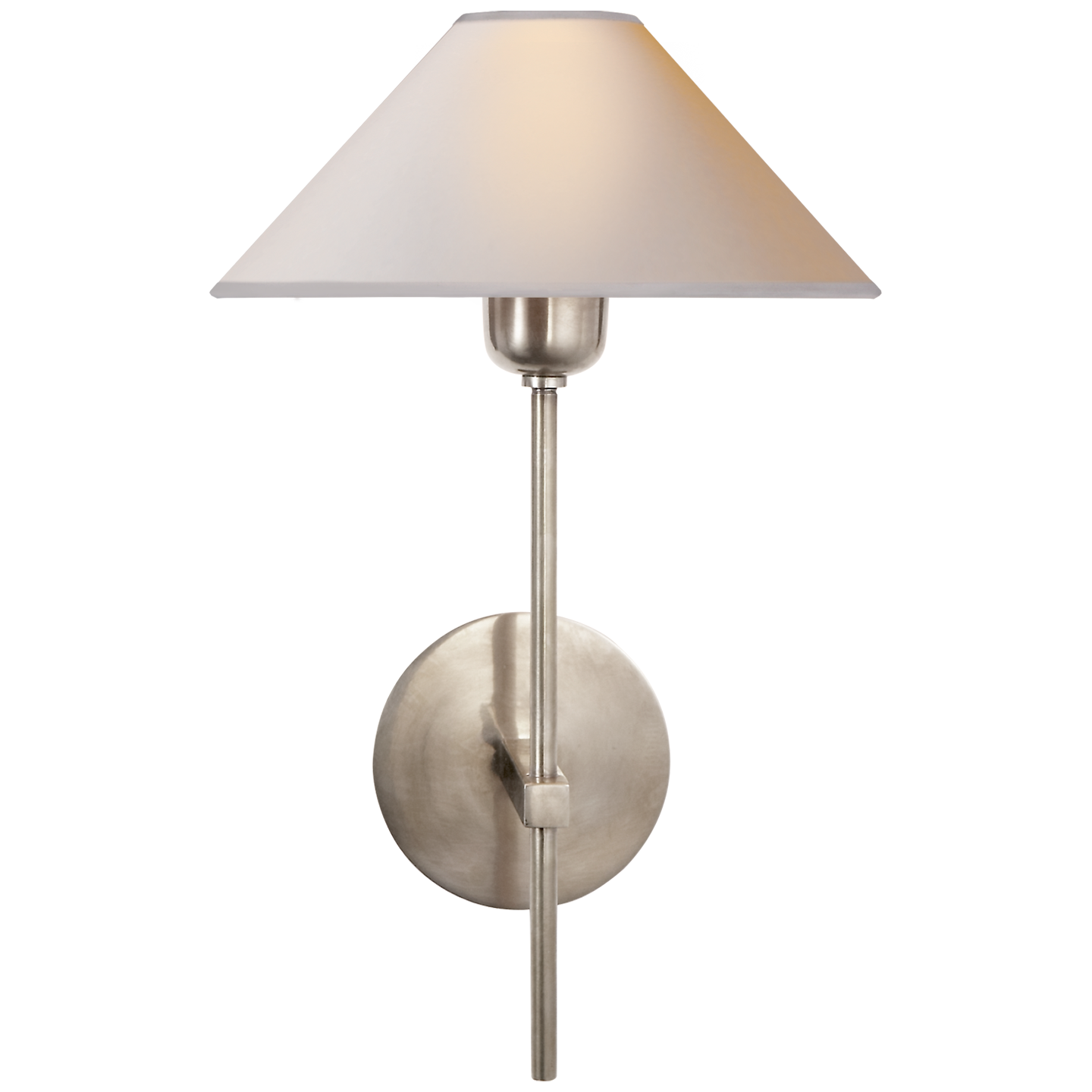 “The Hackney Single Sconce in Antique Nickel by J. Randall Powers feels like a modern take on a traditional sconce. The cone shade is so beautiful!”