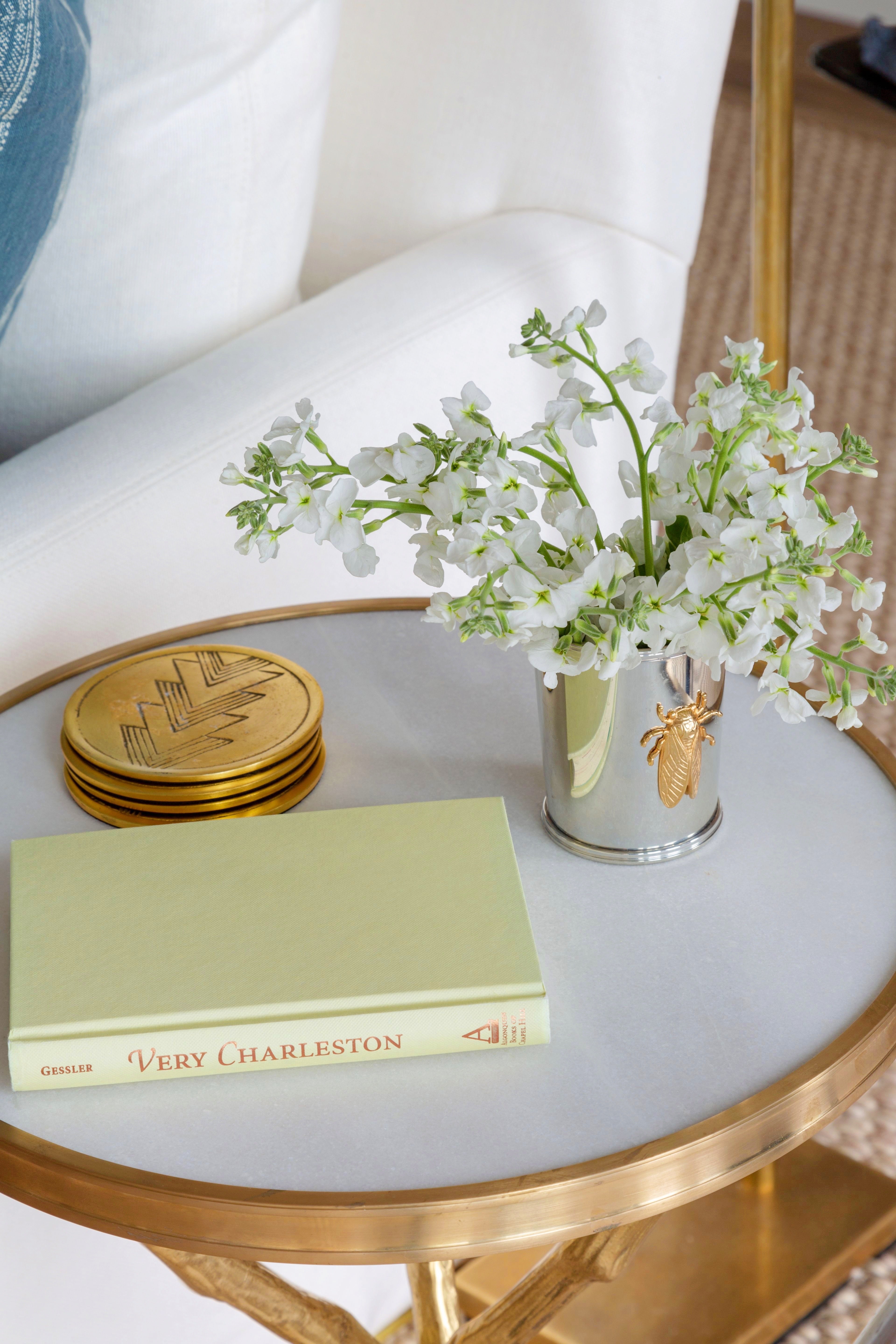 “Antiques South Windermere and Elizabeth Stuart Design are always treasure troves for antiques, vintage pieces, and one-of-a-kind accent rugs, and I love picking up a julep cup from Croghan’s Jewel Box on King Street to display fresh blooms.”