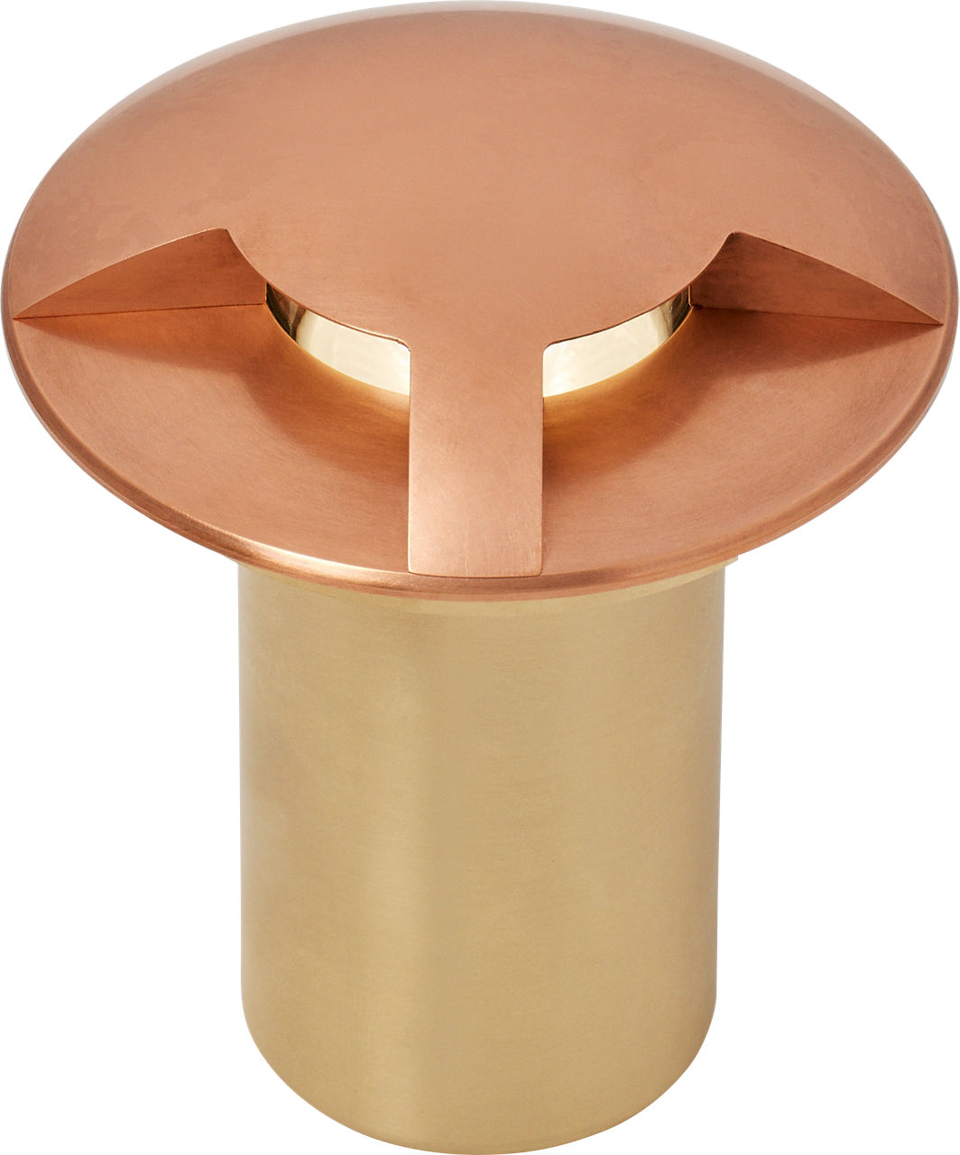 The Shaver 11 Fixed 180-Degree Aperture Directional Marker features a rounded top design with illumination cast in a broad 180-degree arc. Built from durable brass or copper, it provides compact and dependable lighting, ideal for marking pathways and accentuating hardscape features with precision and sophistication.