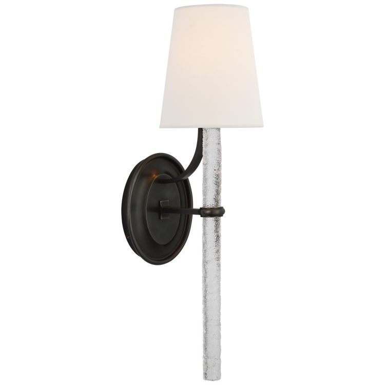 Abigail Large Sconce in Bronze and Clear Wavy Glass with Linen Shade Open Box