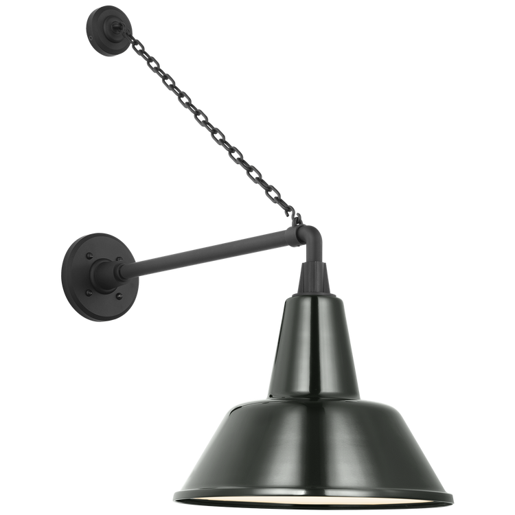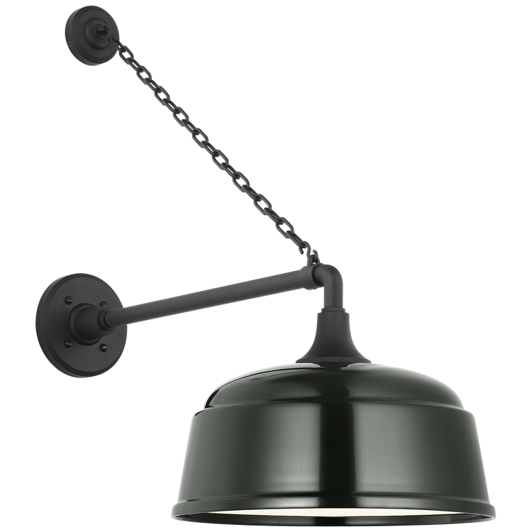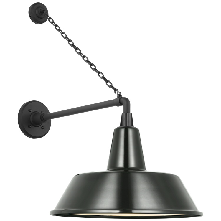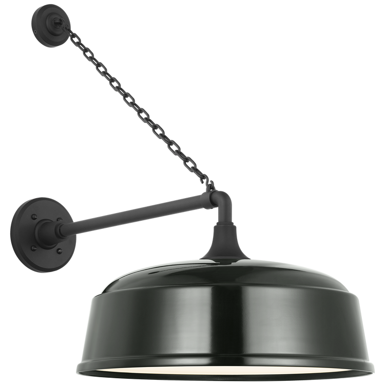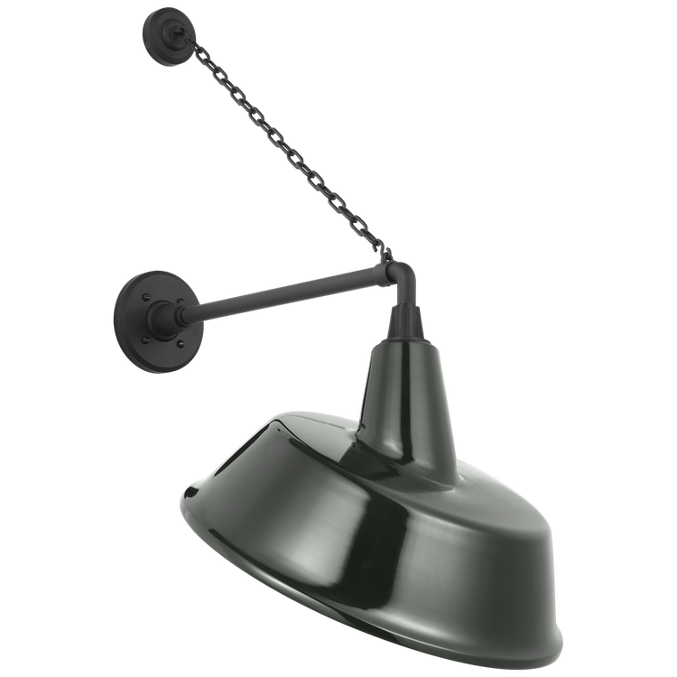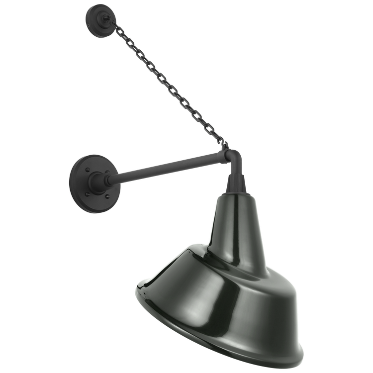 Academy 17.5" Anchored Mack Barn Light in Matte Black with 12.5" Green Bowers Shade