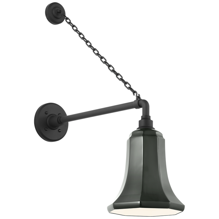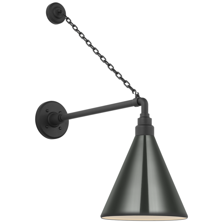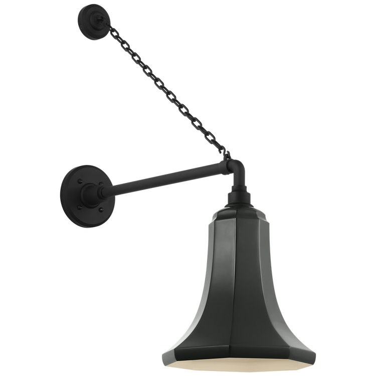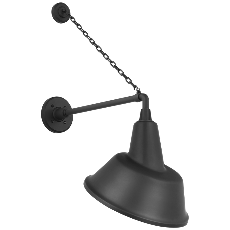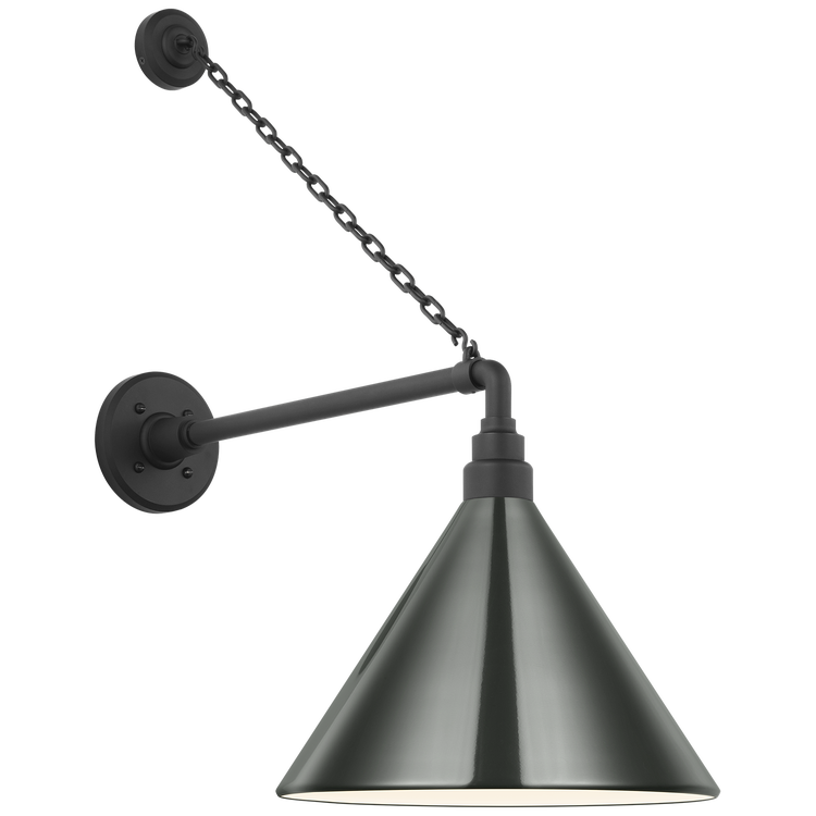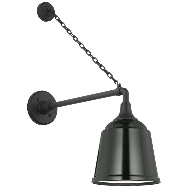 Academy 17.5" Anchored Mack Barn Light in Matte Black with 12.5" Green Bowers Shade