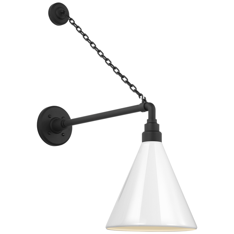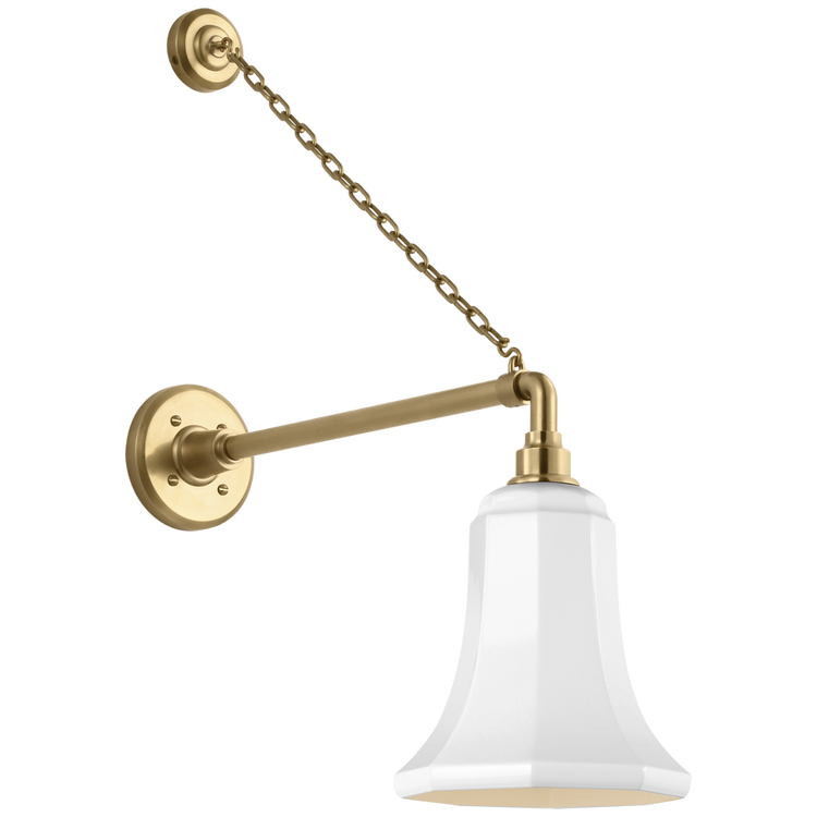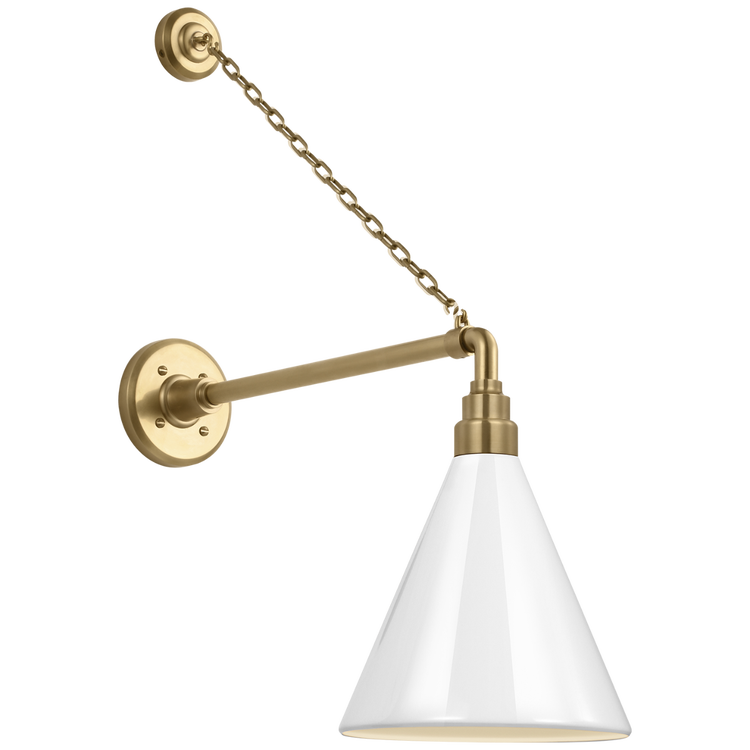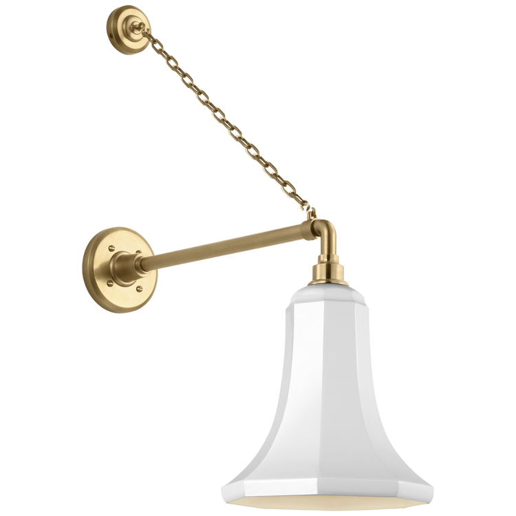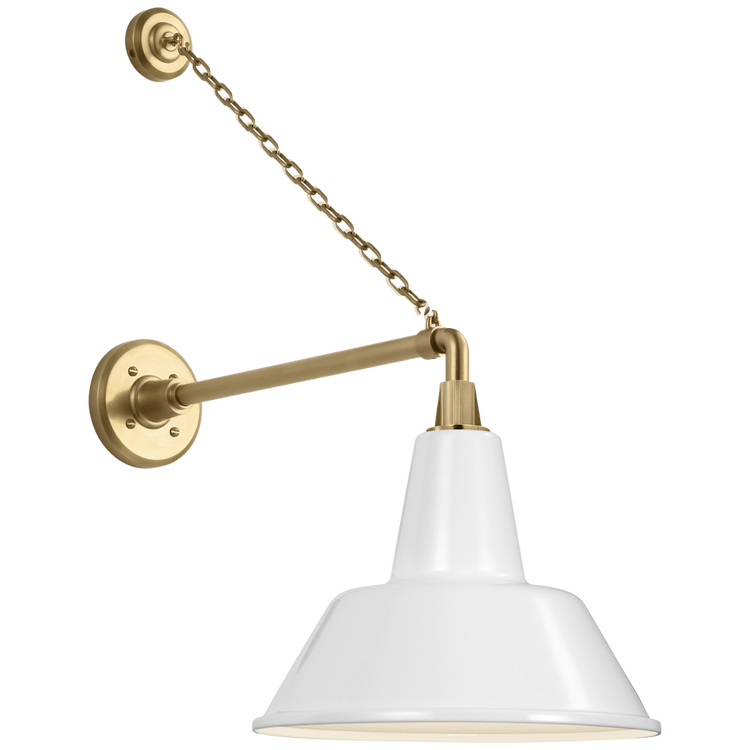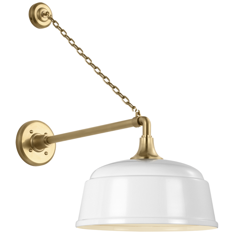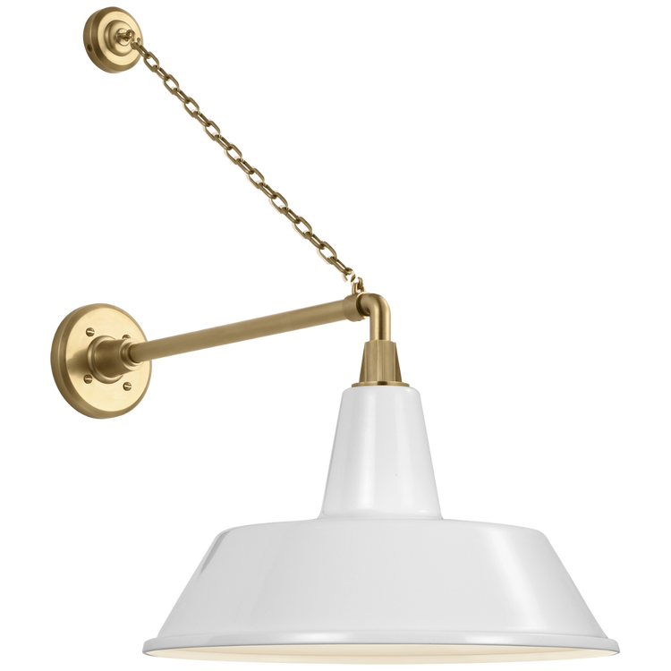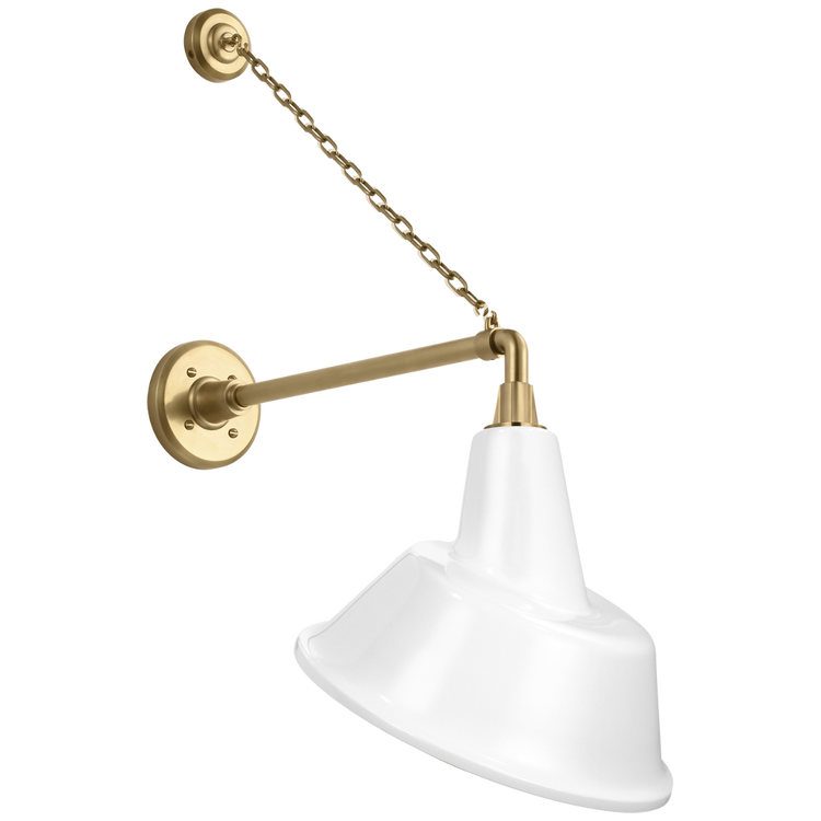 Academy 17.5" Anchored Mack Barn Light in Hand-Rubbed Antique Brass with 16" White Tilted Bowers Shade