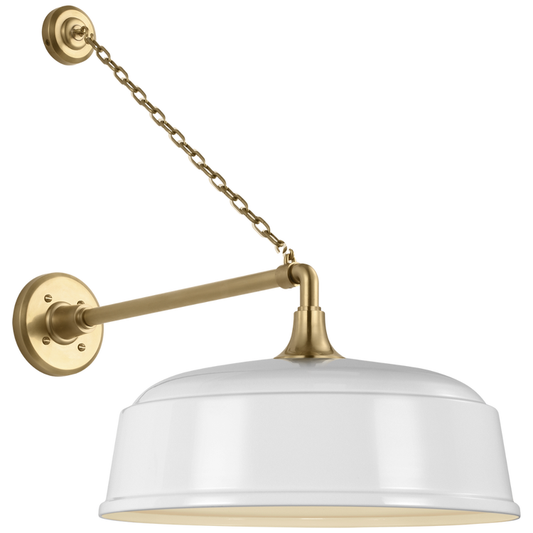 Academy 17.5" Anchored Mack Barn Light in Hand-Rubbed Antique Brass with 16" White Bowers Shade