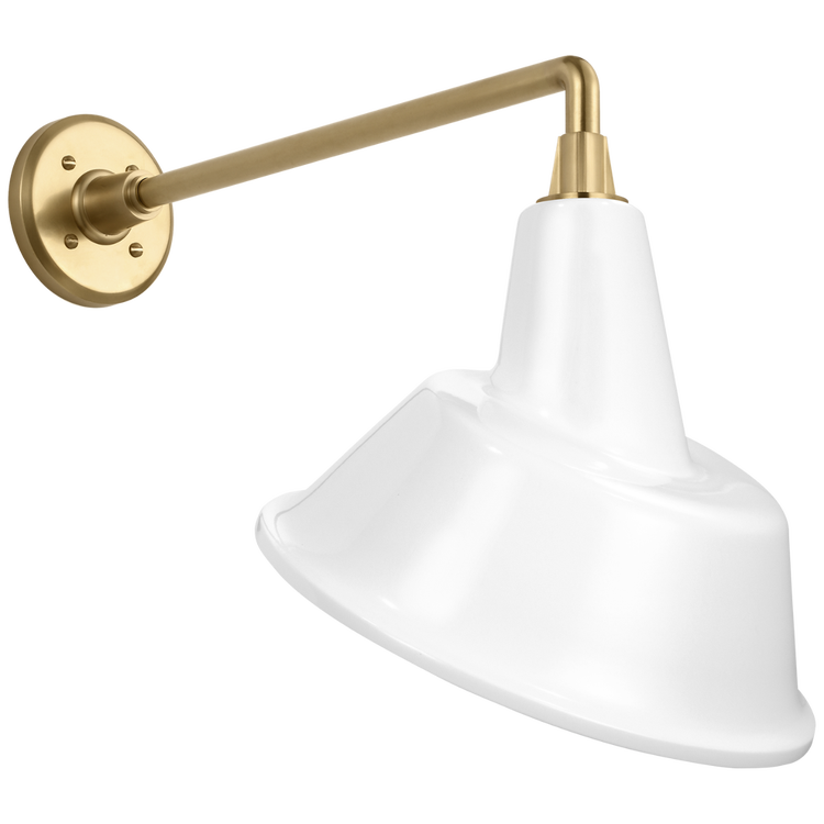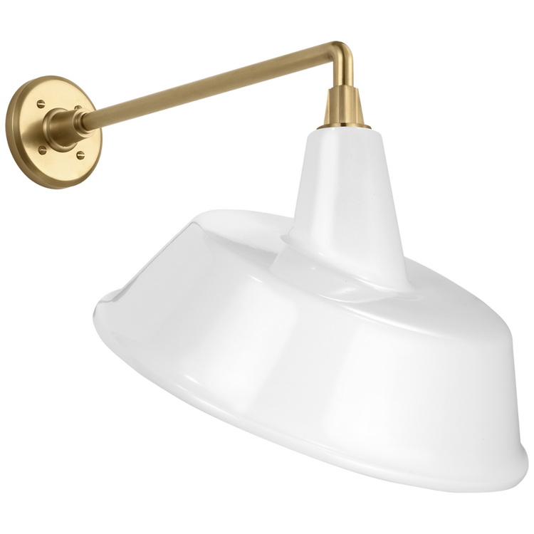 Academy 17.5" Mack Barn Light in Hand-Rubbed Antique Brass with 16" White Bowers Shade