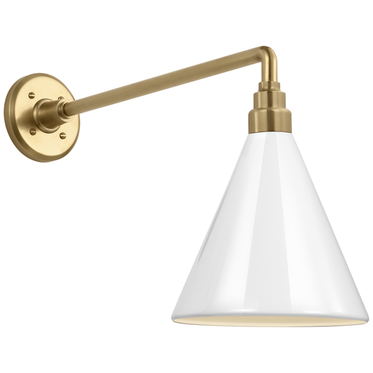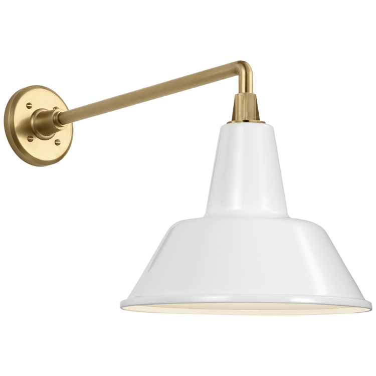 Academy 17.5" Mack Barn Light in Hand-Rubbed Antique Brass with 12.5" White Tilted Bowers Shade