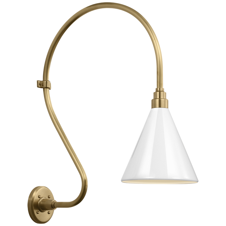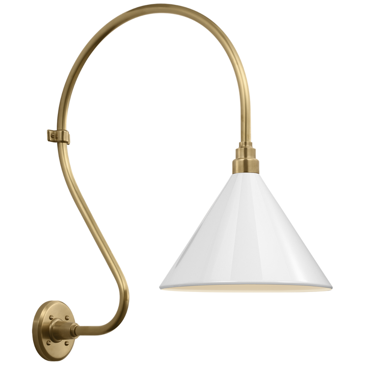 Academy 18" Larrabee Barn Light in Hand-Rubbed Antique Brass with 12.5" White Conical Savannah Shade