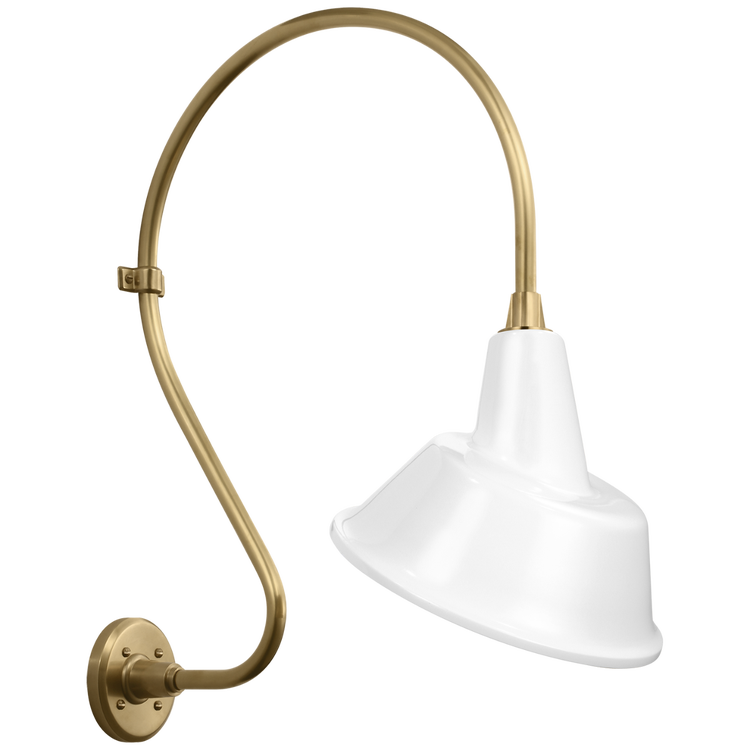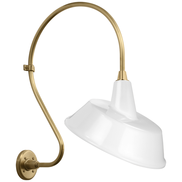 Academy 18" Larrabee Barn Light in Hand-Rubbed Antique Brass with 16" White Bowers Shade