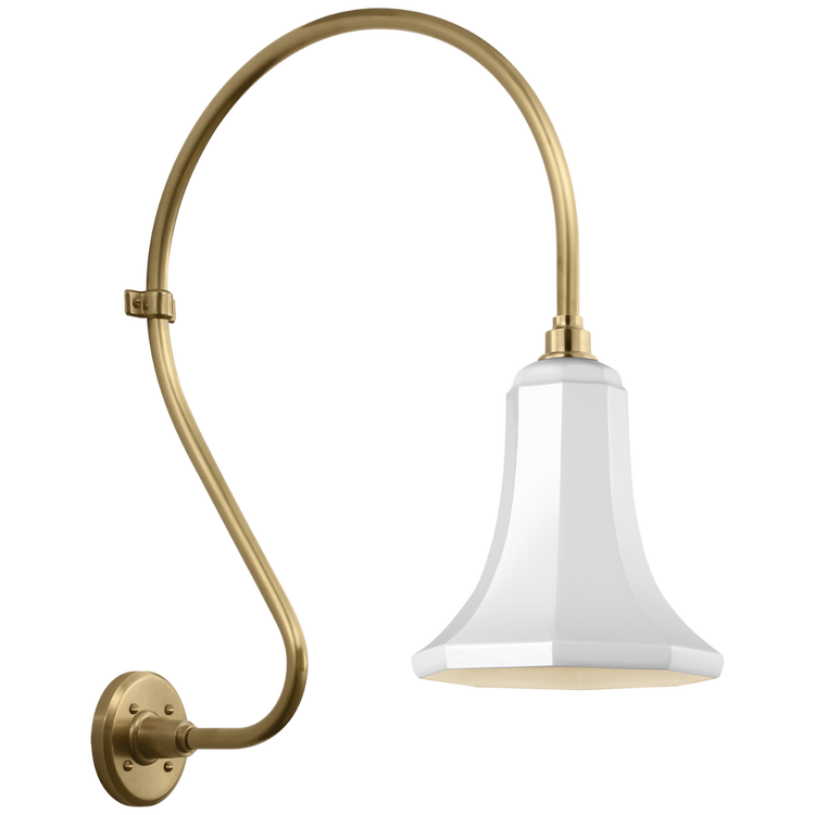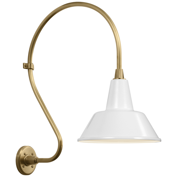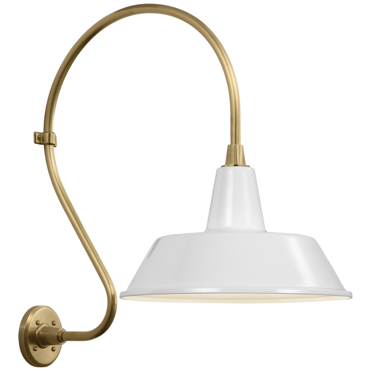 Academy 18" Larrabee Barn Light in Hand-Rubbed Antique Brass with 12.5" White Tilted Bowers Shade