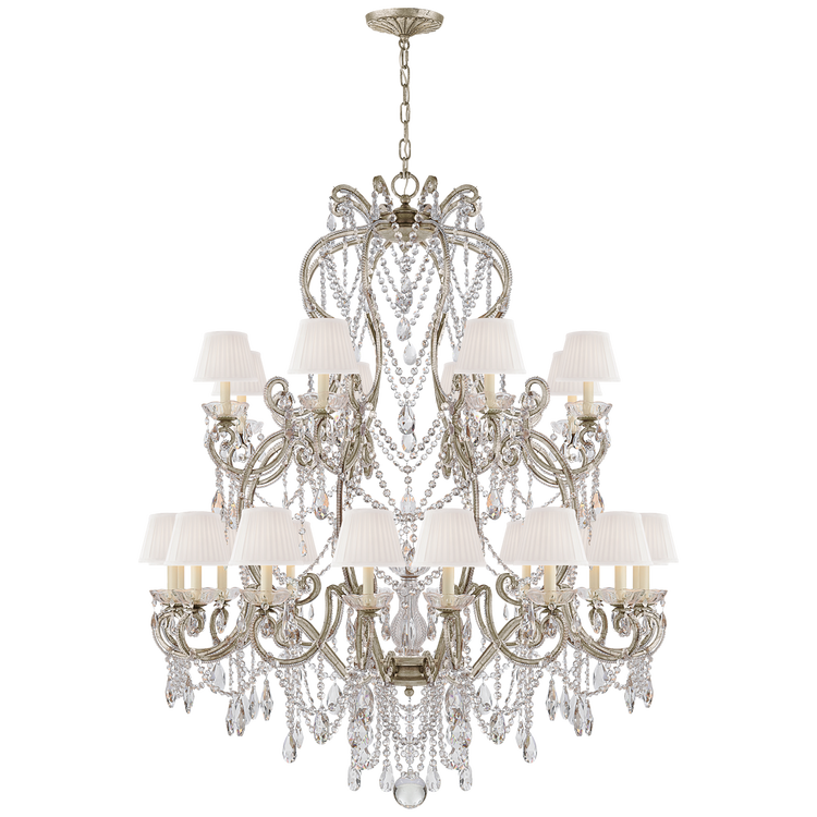 Adrianna Large Chandelier in Antique Silver Leaf and Crystal with Silk Shades Open Box