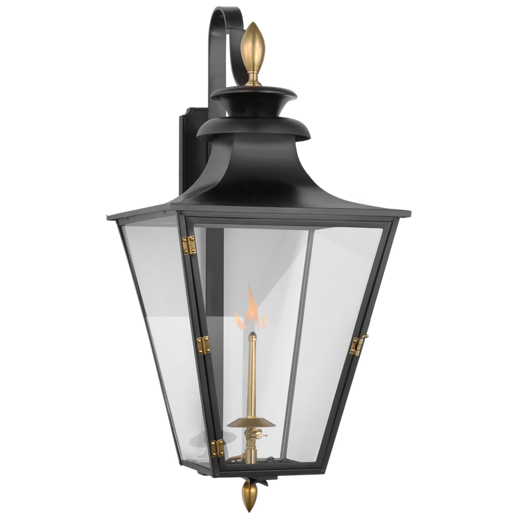 Albermarle Medium Bracketed Gas Wall Lantern in Matte Black and Brass with Clear Glass Open Box