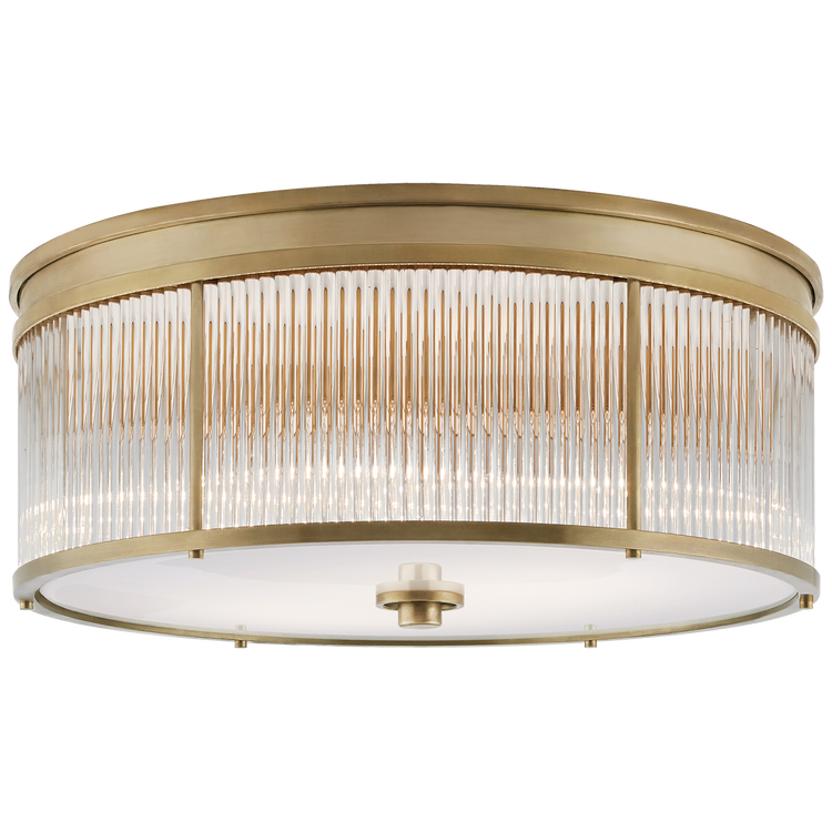 Allen Large Round Flush Mount in Natural Brass and Glass Rods with White Glass Open Box