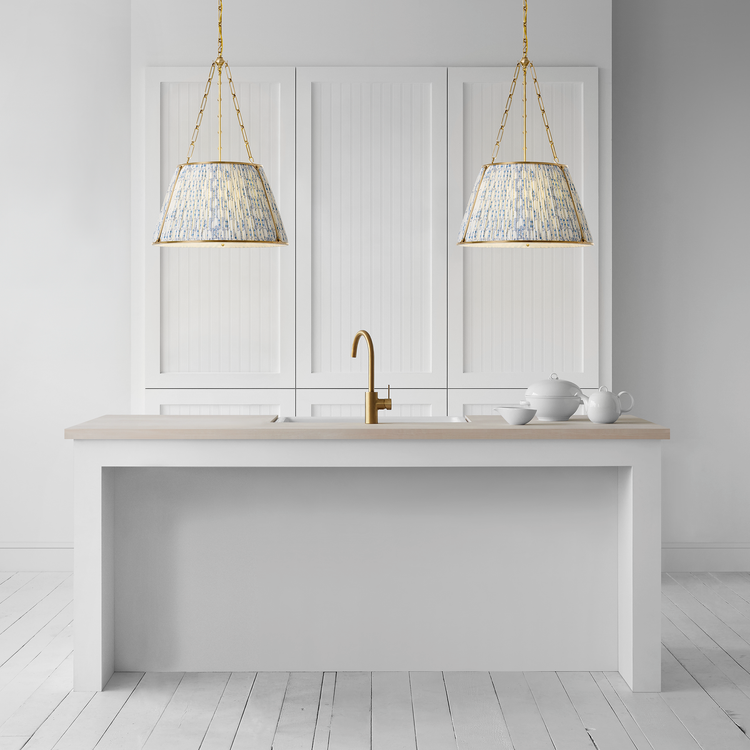 Allister 21" Hanging Shade in Hand-Rubbed Antique Brass with Schumacher Blue Aditi Pleated Shade