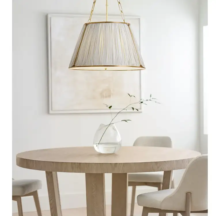 Allister 21" Hanging Shade in Hand-Rubbed Antique Brass with Mist Silk Pleated Shade
