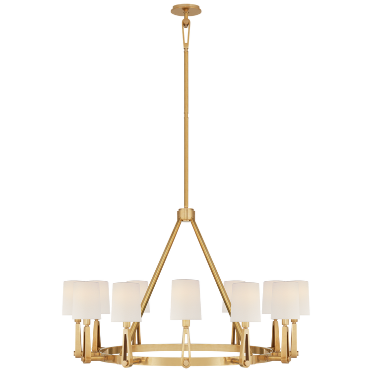 Alpha Grande Chandelier in Hand-Rubbed Antique Brass with Linen Shades