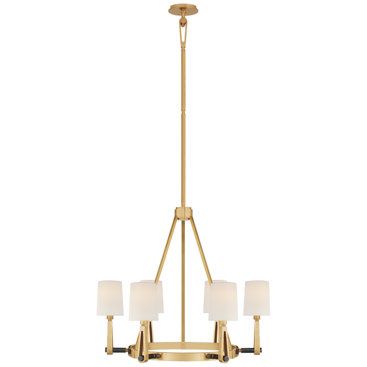 Alpha Medium Chandelier in Hand-Rubbed Antique Brass and Bronze with Linen Shades