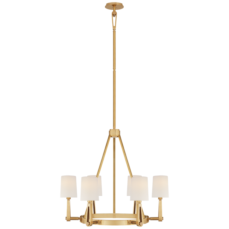 Alpha Medium Chandelier in Hand-Rubbed Antique Brass with Linen Shades