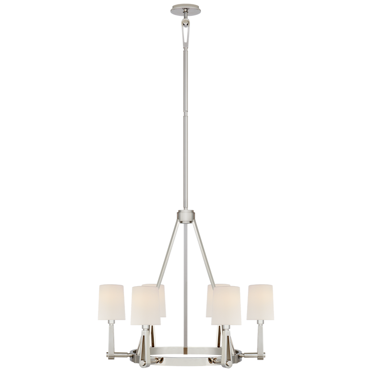 Alpha Medium Chandelier in Polished Nickel with Linen Shades