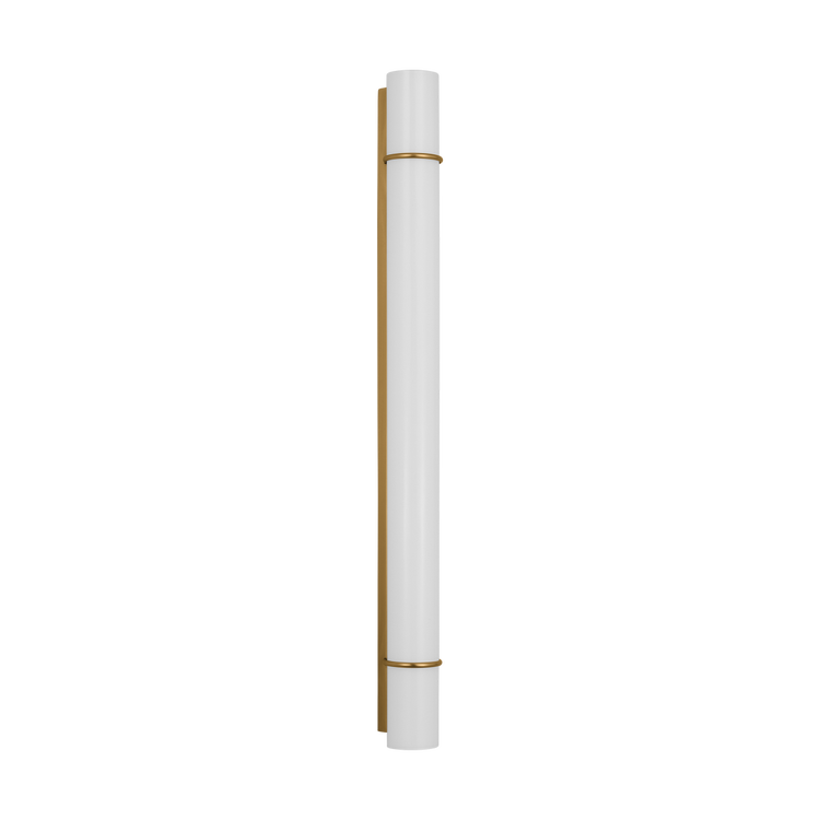 The Amelie series is a simplified cylindrical linear bath light with two metal rings inspired by a vintage cuff bracelet.